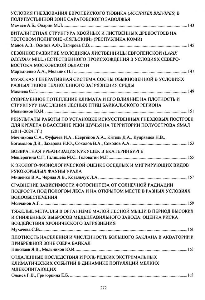 Лукьянова Л. Е. Видовые особенности селекции местообитаний лесными полевками в естественно нарушенной среде / Л. Е. Лукьянова // 80 лет экологической науке на Урале: материалы всероссийской научной конференции с международным участием, посвященной 80-летию Института экологии растений и животных УрО РАН, Екатеринбург, 11-15 ноября 2024 г. - Екатеринбург : Reaction, 2024. - С. 135-137.