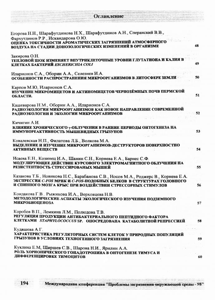 Гейн С. В. Влияние стресса на выраженность иммунных реакций / С. В. Гейн, Ю. И. Шилов // Международная конференция "Проблемы загрязнения окружающей среды-98", 12-18 сентября 1998 г., Москва, Россия = International Conference "Environmental Pollution ICEP`98". - Москва, Россия, 1998. - С. 43.