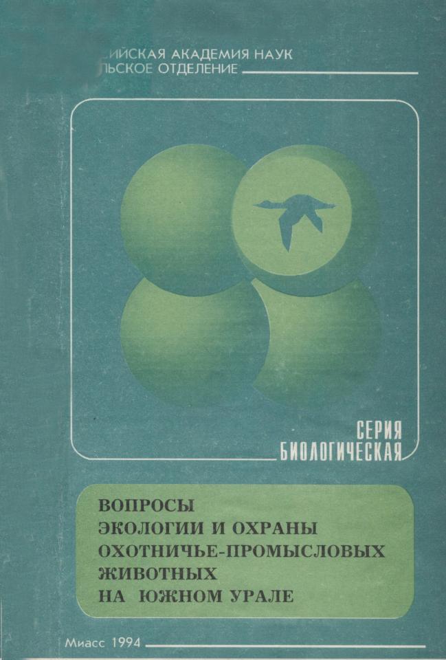 Вопросы экологии и охраны охотничье-промысловых животных на Южном Урале : сборник научных трудов / Российская академия наук, Уральское отделение, Ильменский государственный заповедник ; ответственный редактор В. Д. Захаров. - Миасс, 1994. - 64 с. - (Серия биологическая).