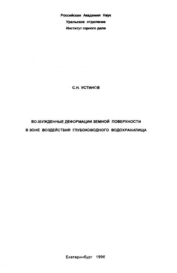 Устинов С. Н. Возбужденные деформации земной поверхности в зоне воздействия глубоководного водохранилища / С. Н. Устинов ; ответственный редактор А. В. Зубков ; Российская академия наук, Уральское отделение, Институт горного дела. - Екатеринбург, 1996. - 89 с.