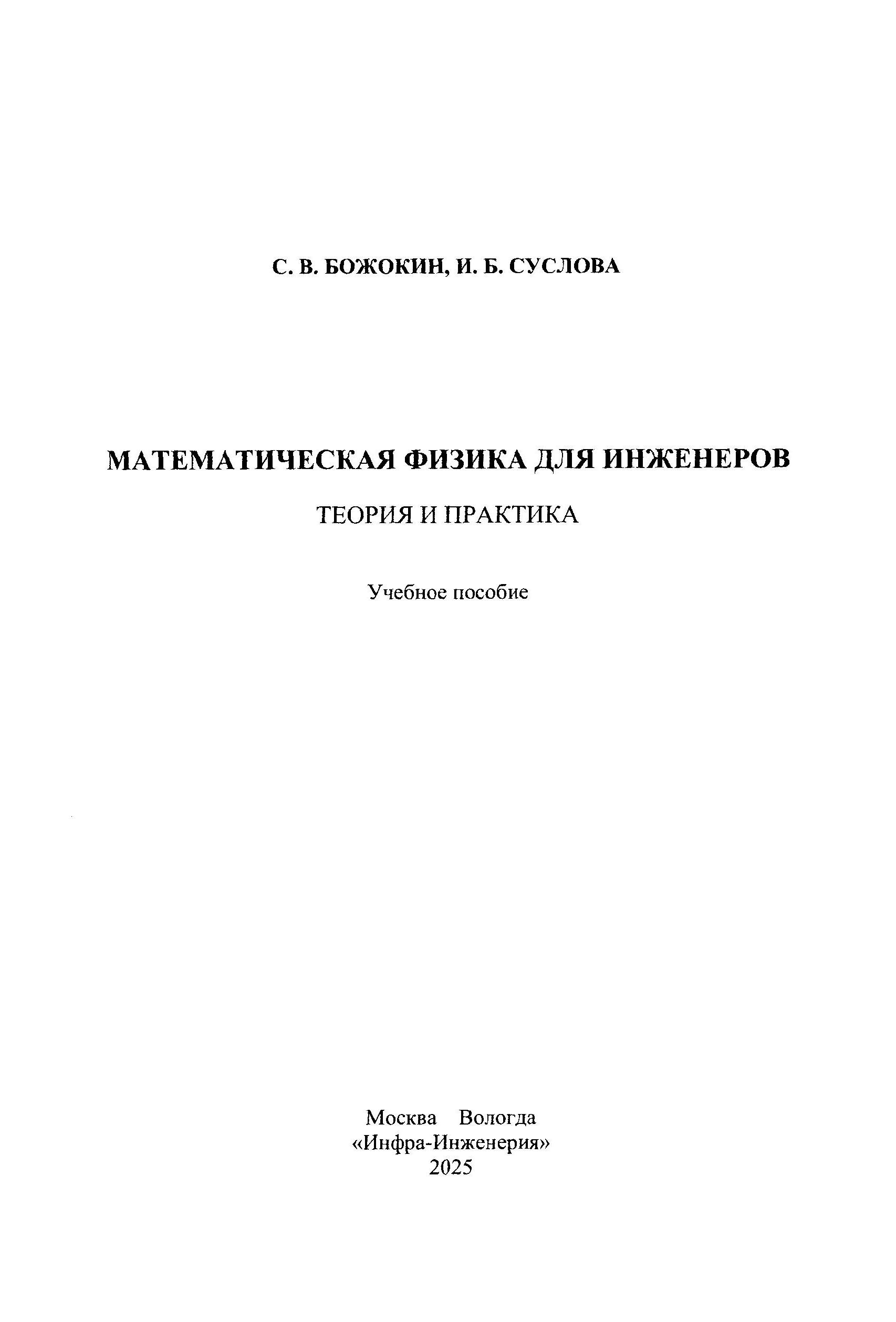 Математическая физика для инженеров: теория и практика / Божокин С. В., Суслова И. Б.. - Б. м. : Инфра-Инженерия, 2025. - 608 с. - ISBN 978-5-9729-2553-7