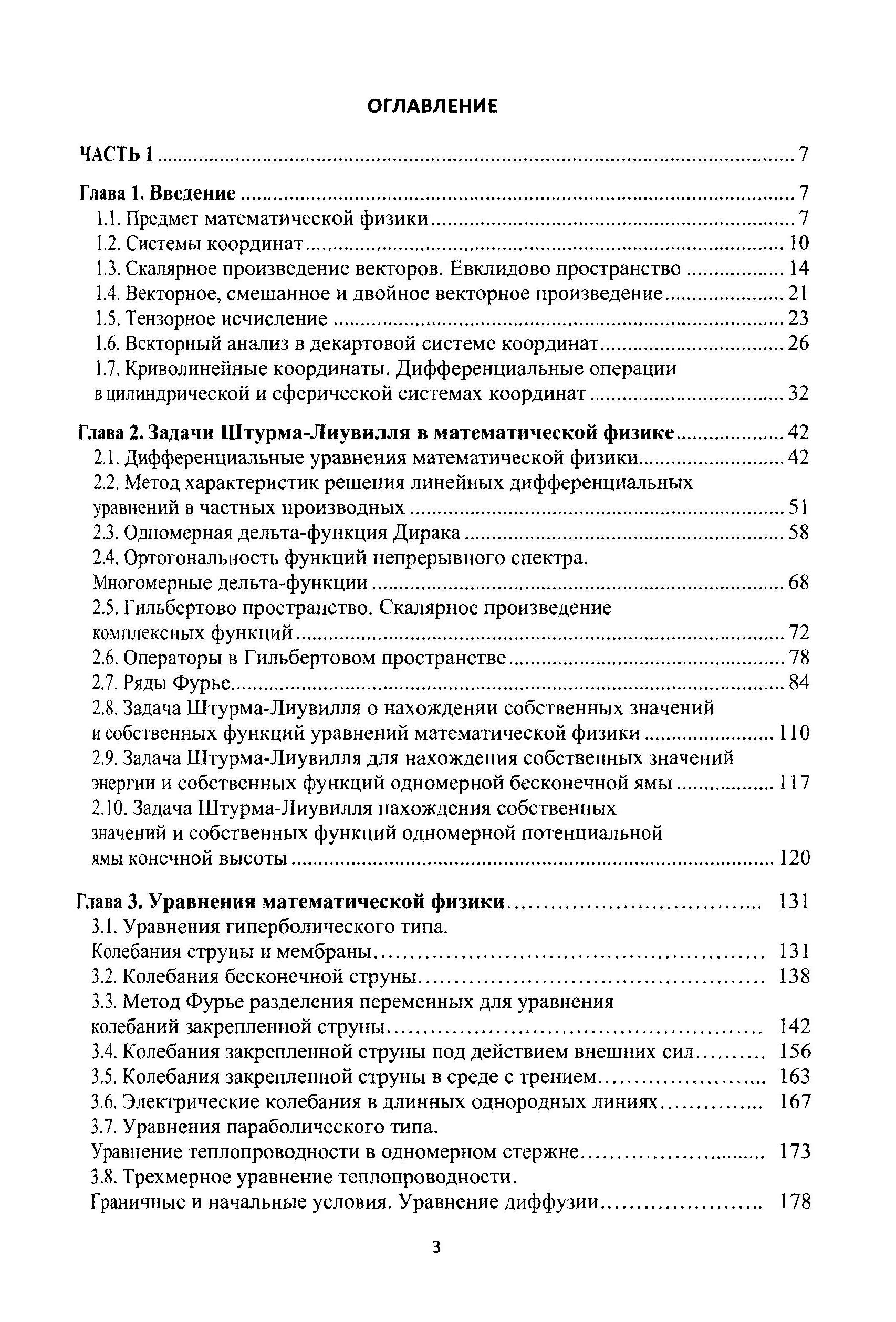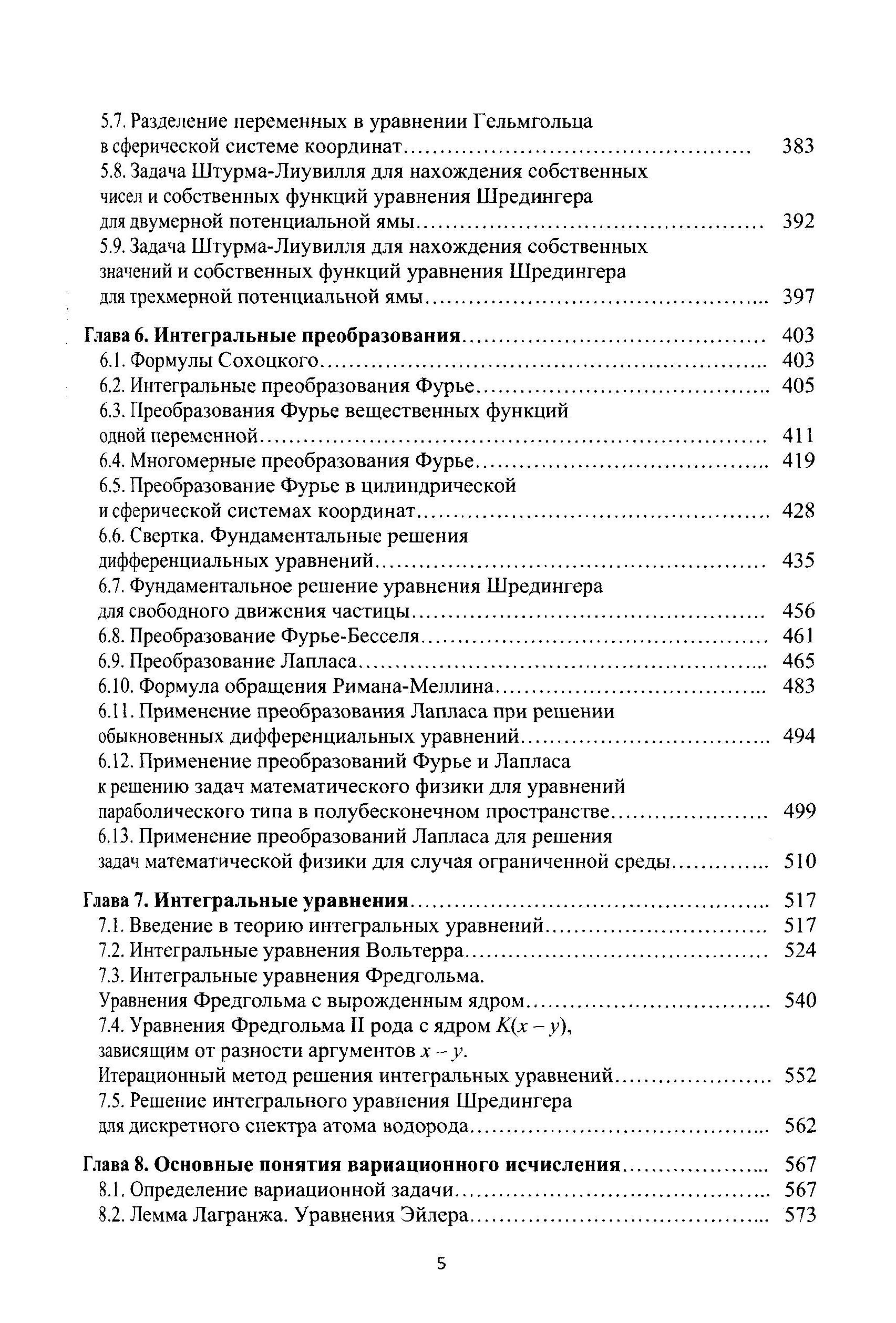 Рассматриваются дифференциальные операции в различных системах координат. Показано решение задач Штурма-Лиувилля для нахождения собственных значений и собственных функций. Приведены постановки задач для уравнений в частных производных. Выполнена классификация этих уравнений. Изложены основные специальные функции математической физики: полиномы Эрмита, Лежандра, Чебышева, а также функции Бесселя и Макдональда. Рассматриваются применения специальных функций для решения уравнений математической физики. Изучаются различные виды преобразований Фурье и Лапласа. Излагаются основные разделы вариационного исчисления. Для студентов направлений подготовки 01.03.02 «Физика» (физика атомного ядра и элементарных частиц, физика космических и плазменных явлений, биофизика), 01.03.03 «Механика и математическое моделирование», 03.03.01 «Прикладная математика» и 03.04.01 «Прикладная физика». Книга будет полезна для аспирантов и научных работников, специализирующихся в постановке и решении задач математи
