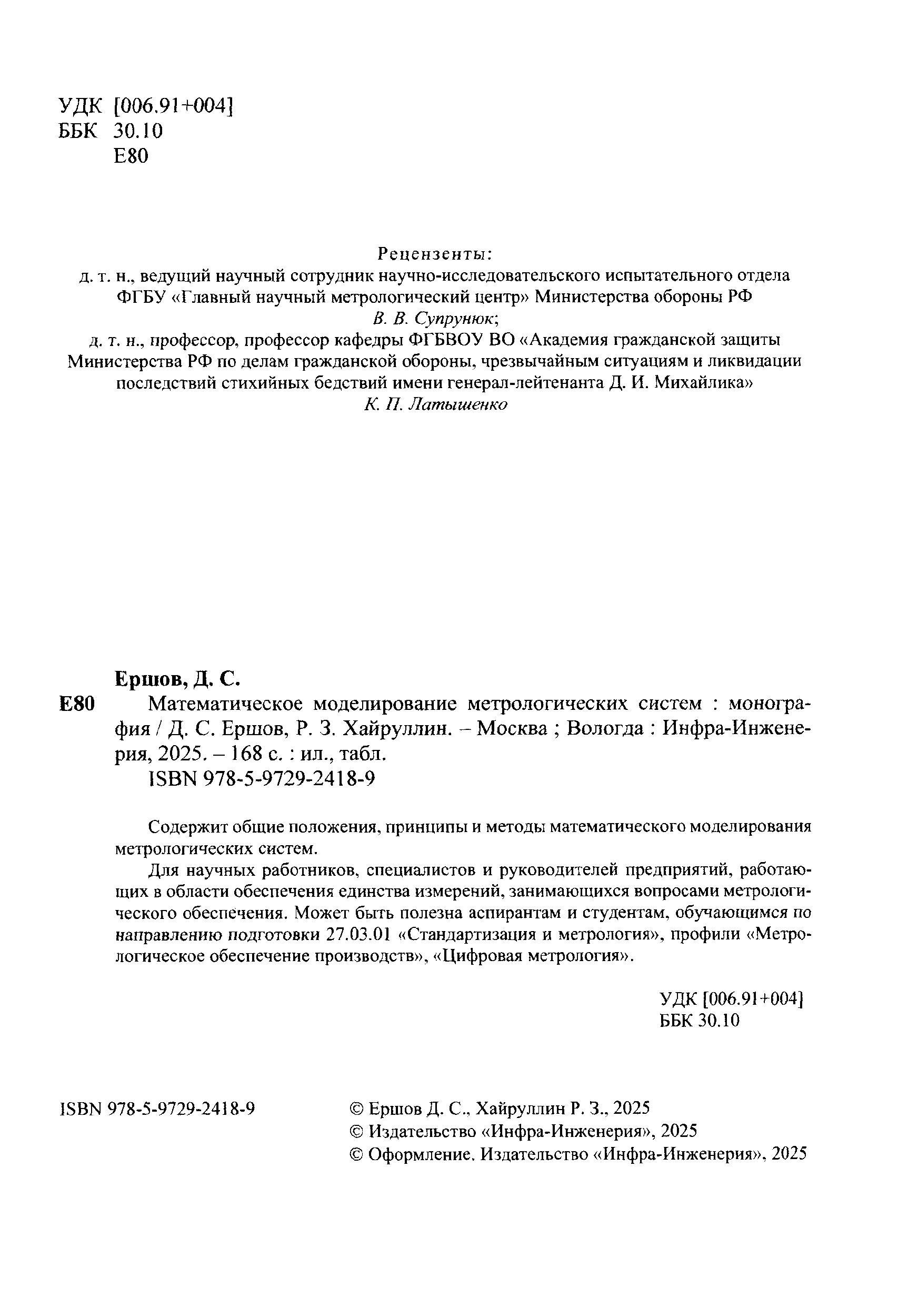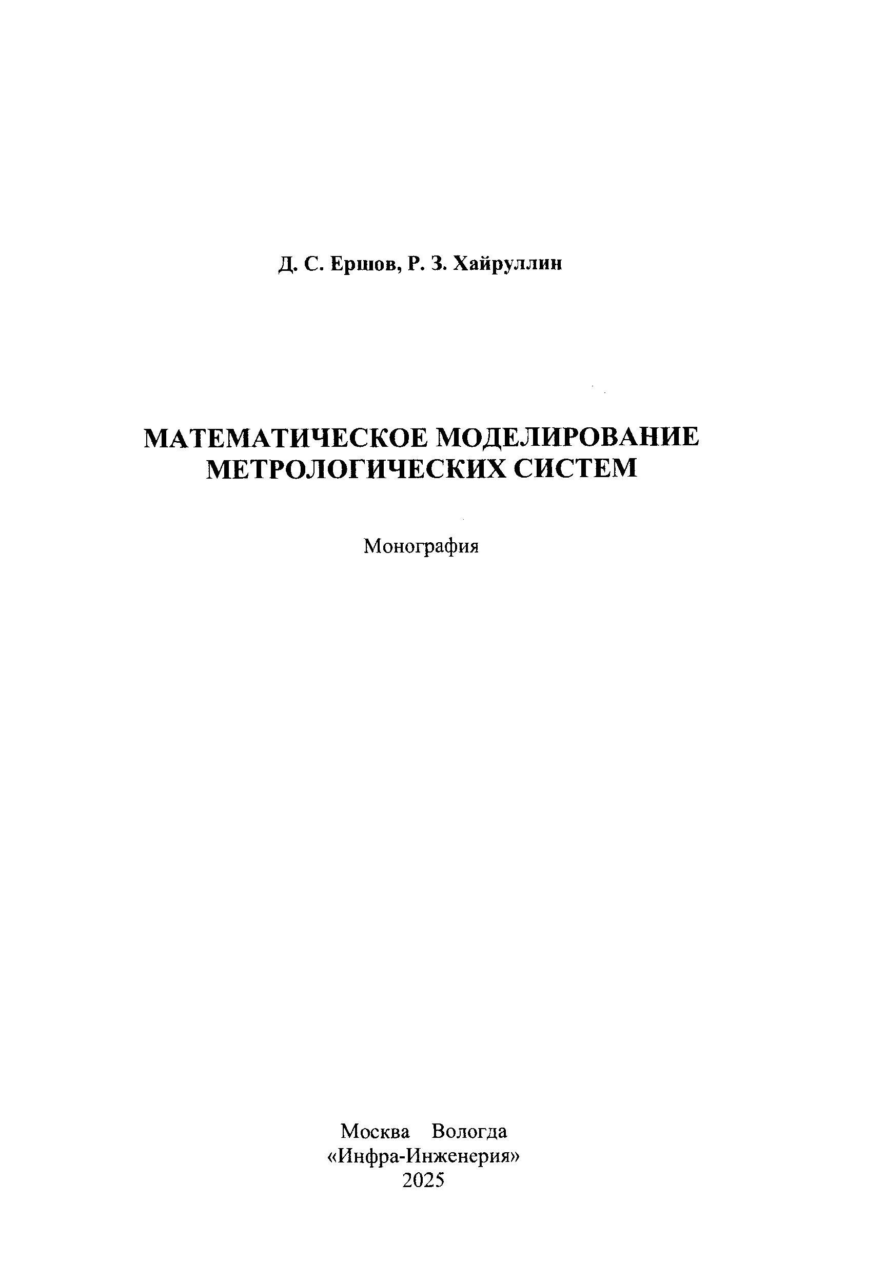 Математическое моделирование метрологических систем / Ершов Д. С., Хайруллин Р. З.. - Б. м. : Инфра-Инж, 2025. - 168 с. - ISBN 978-5-9729-2418-9