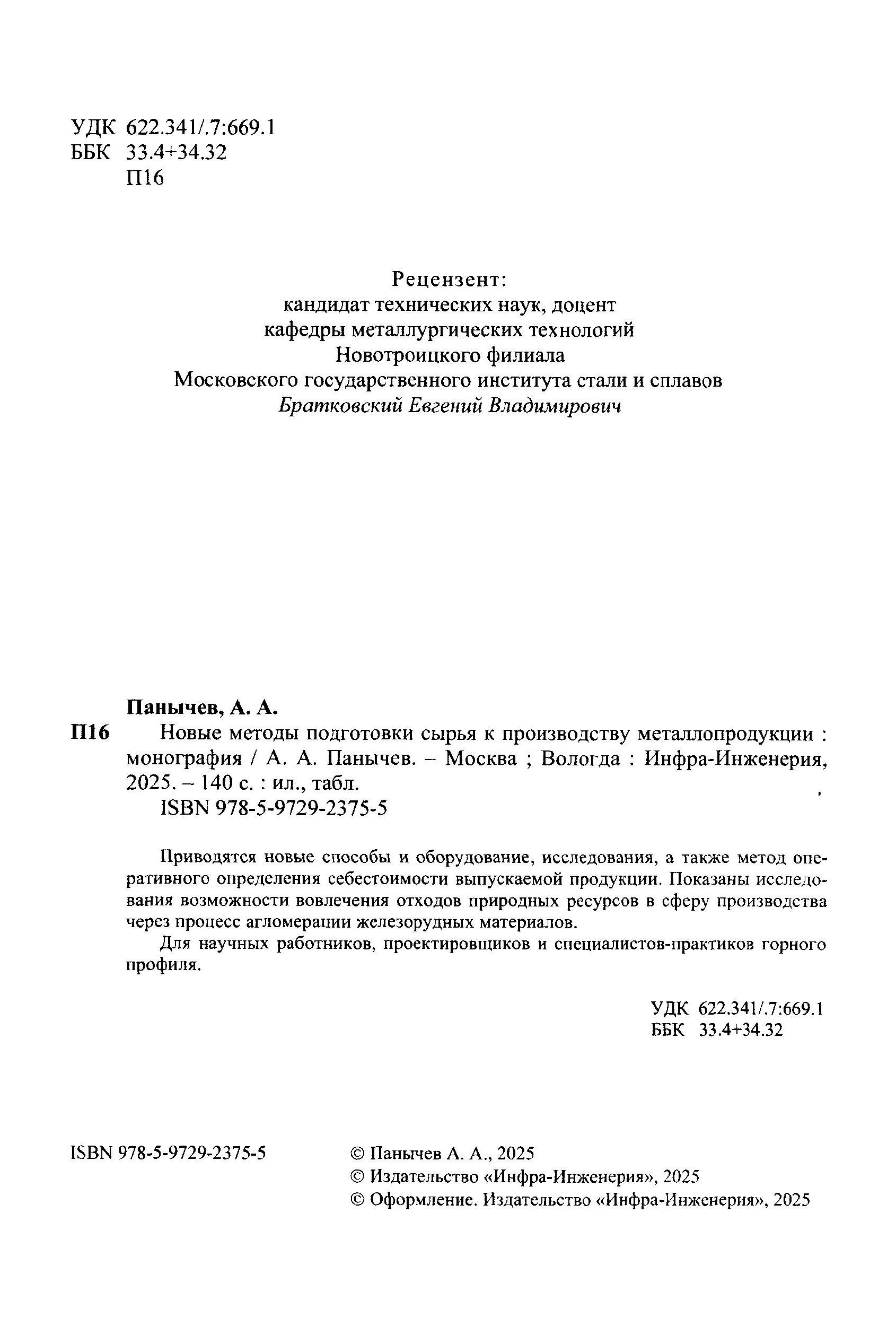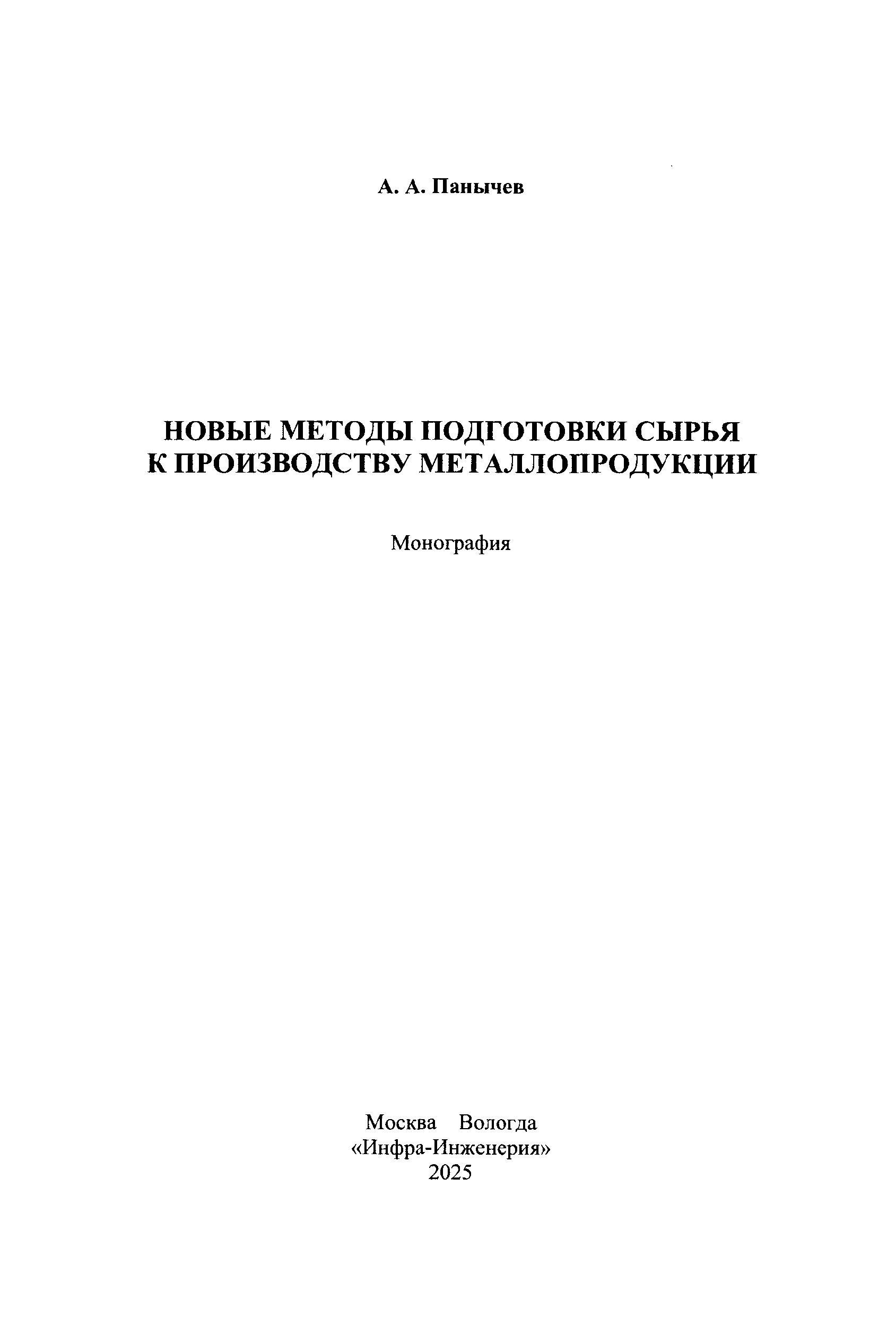 Новые методы подготовки сырья к производству металлопродукции / Панычев А. А.. - Б. м. : Инфра-Инж, 2025. - 140 с. - ISBN 978-5-9729-2375-5