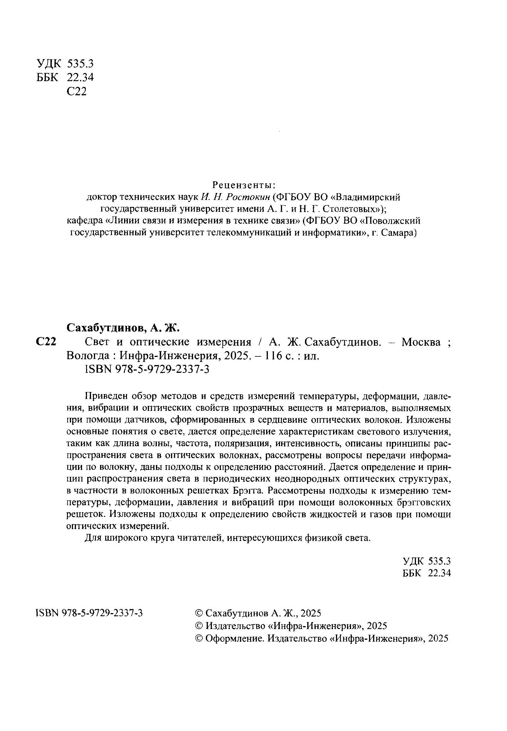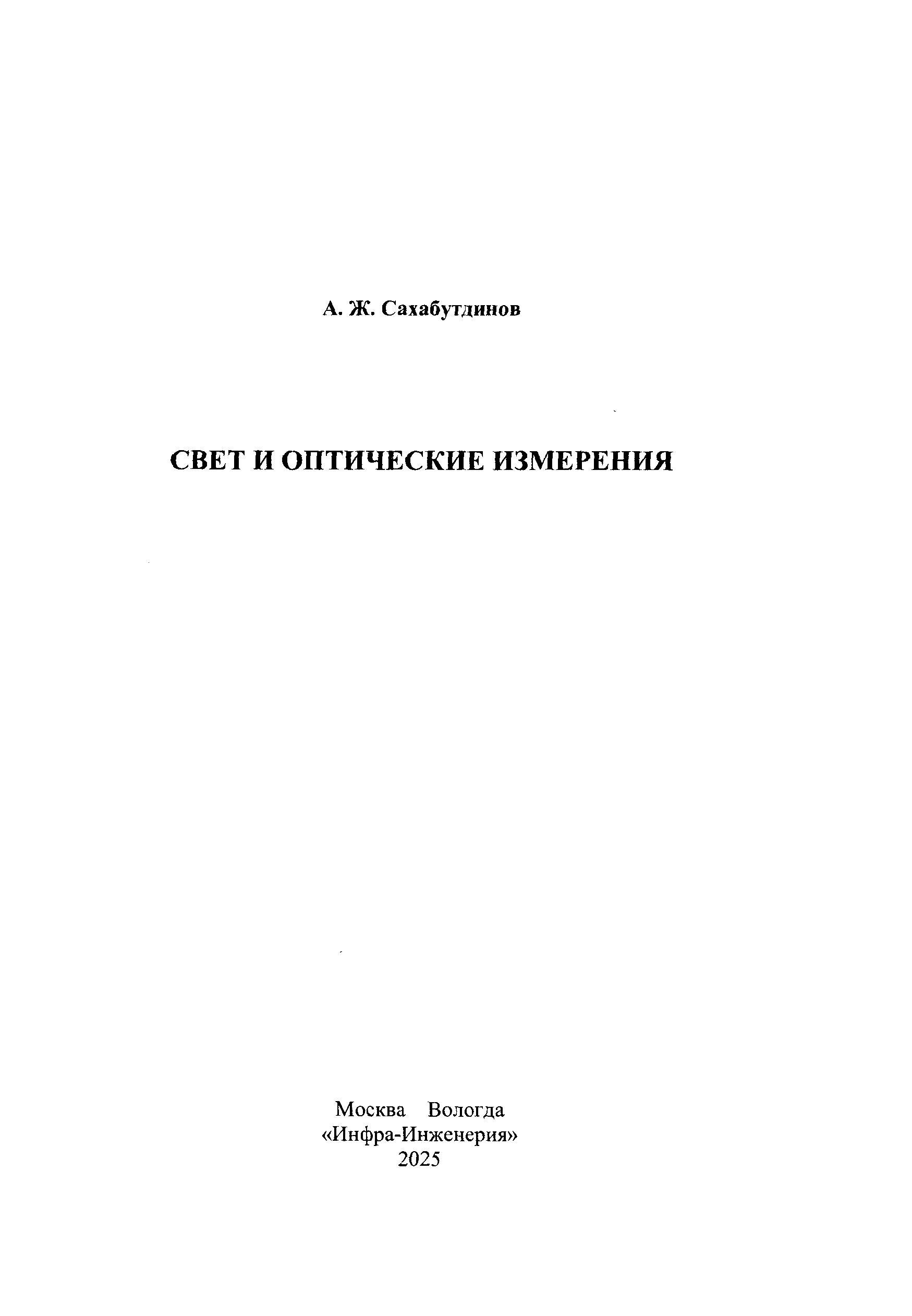 Свет и оптические измерения / Сахабутдинов А. Ж.. - Б. м. : Инфра-Инж, 2025. - 116 с. - ISBN 978-5-9729-2337-3