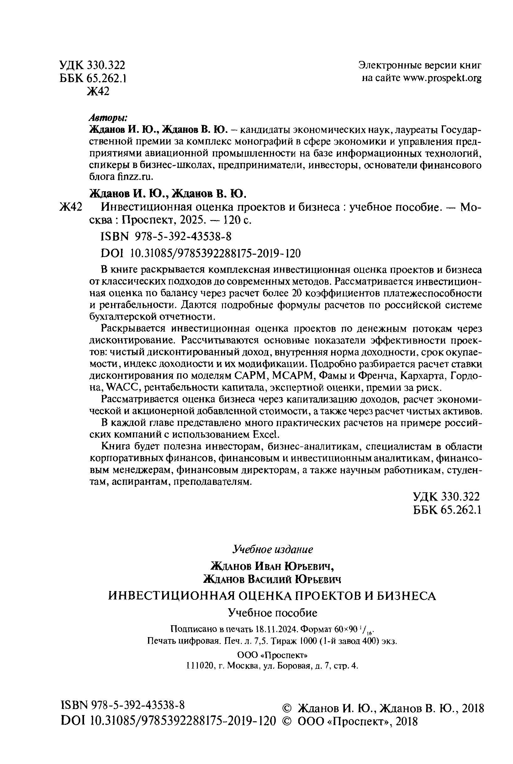 Инвестиционная оценка проектов и бизнеса. Уч. пос.-М.:Проспект,2025. |