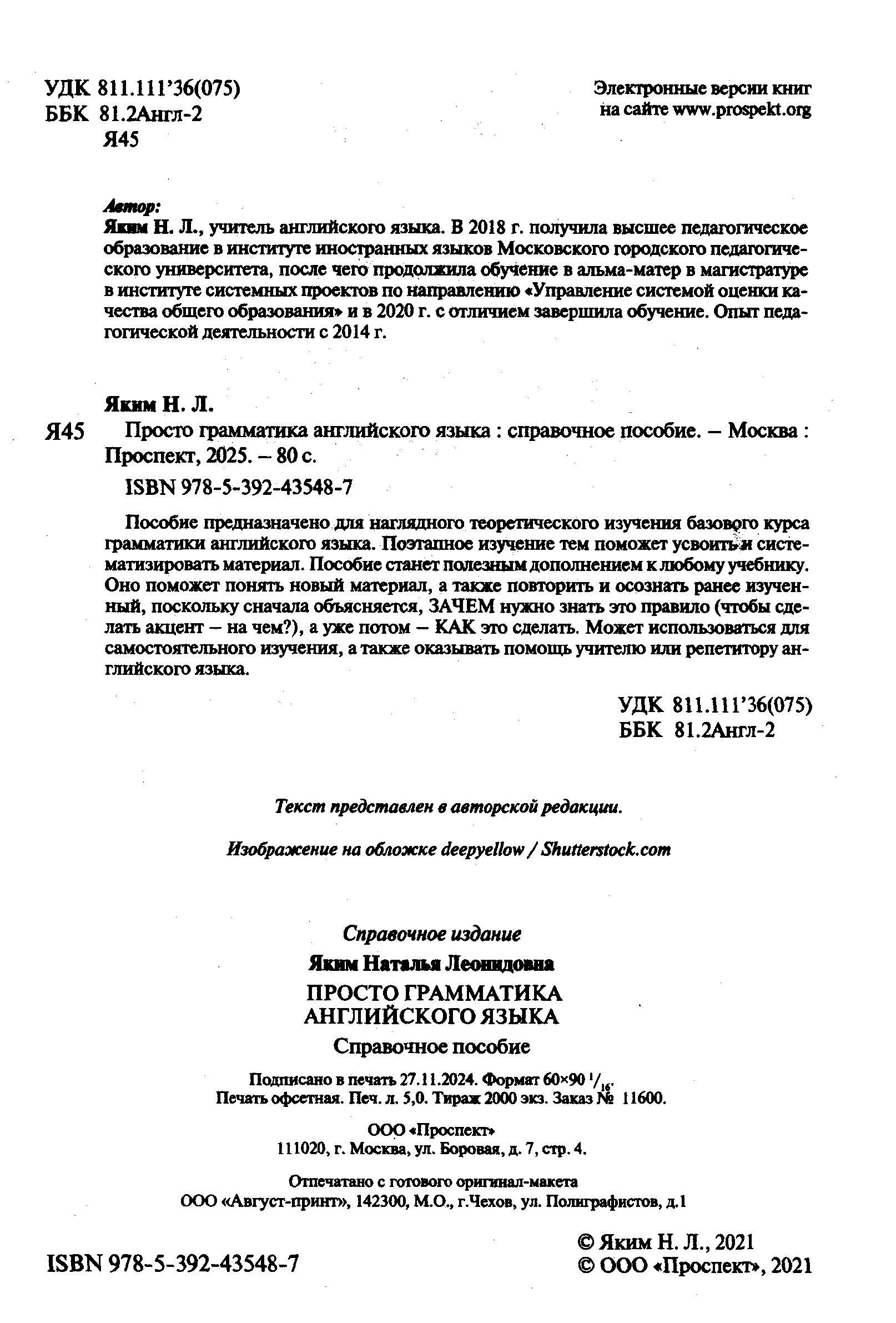 Просто грамматика английского языка. Справочное пособие.-М.:Проспект,2025. |