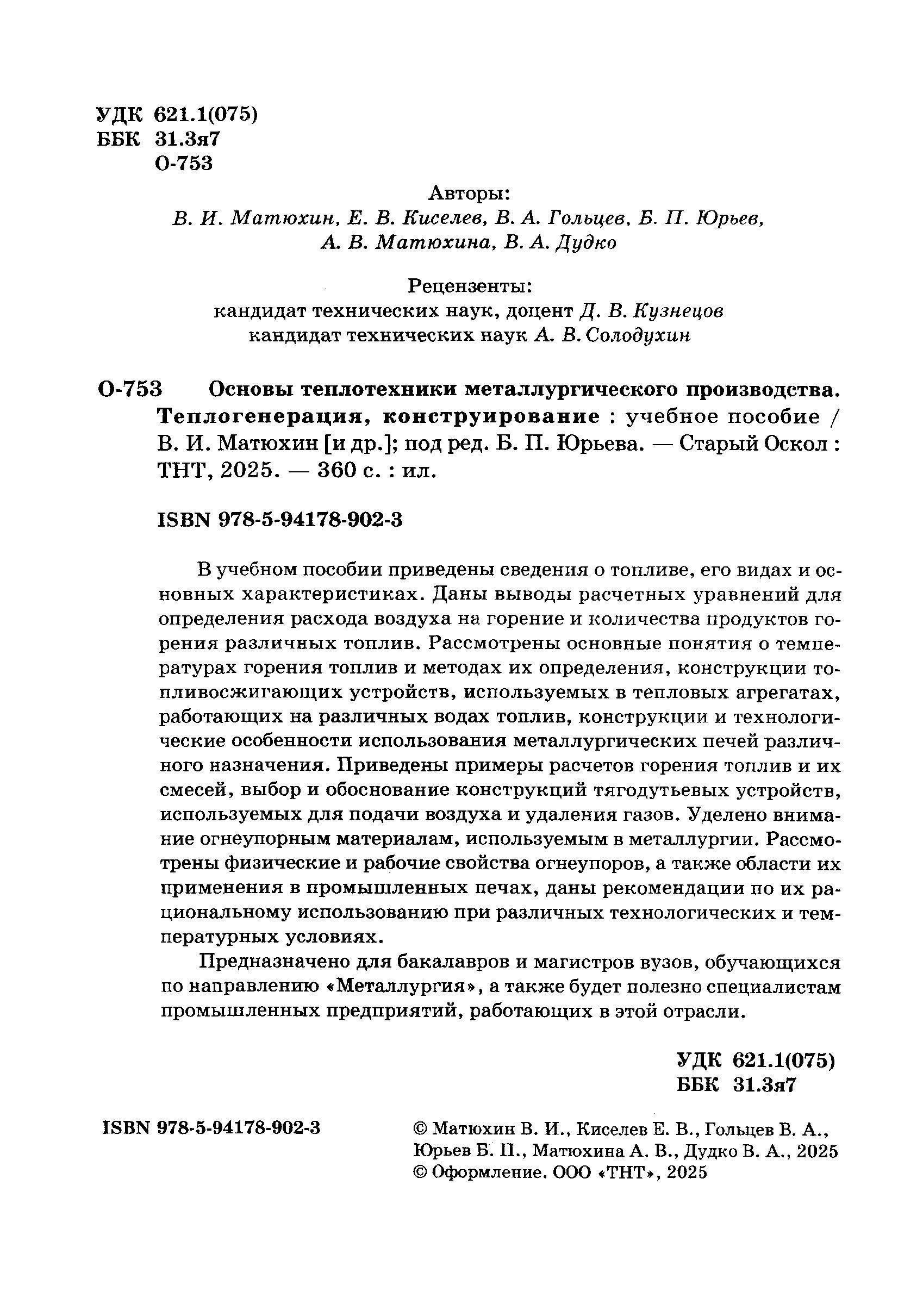 Основы теплотехники металлургического производства. Теплогенерация, конструирование |