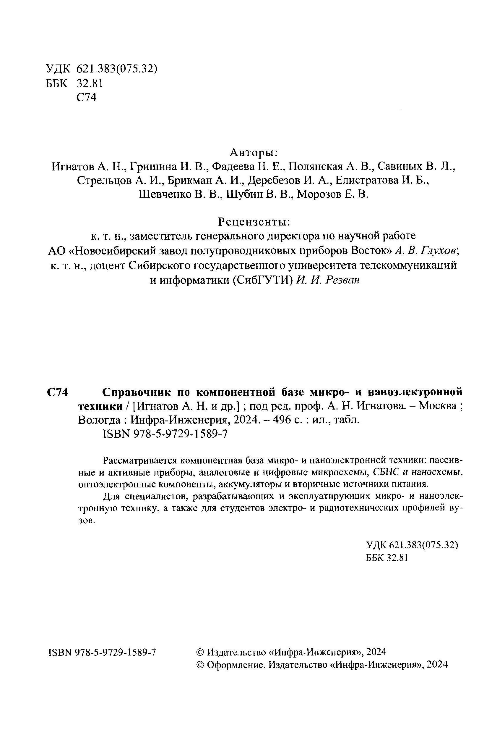 Справочник по компонентной базе микро- и наноэлектронной техники |