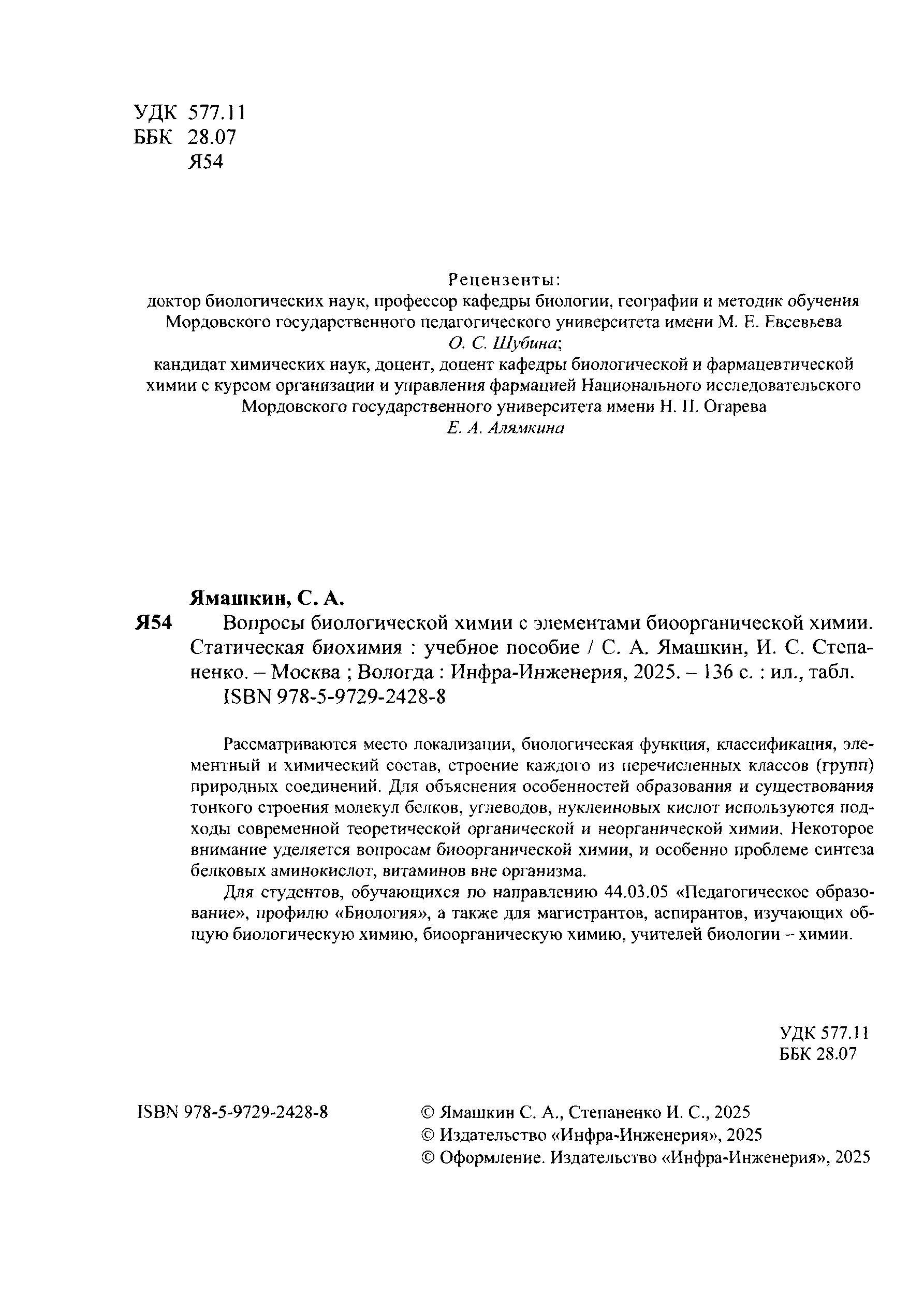 Вопросы биологической химии с элементами биоорганической химии. Статическая биохимия |
