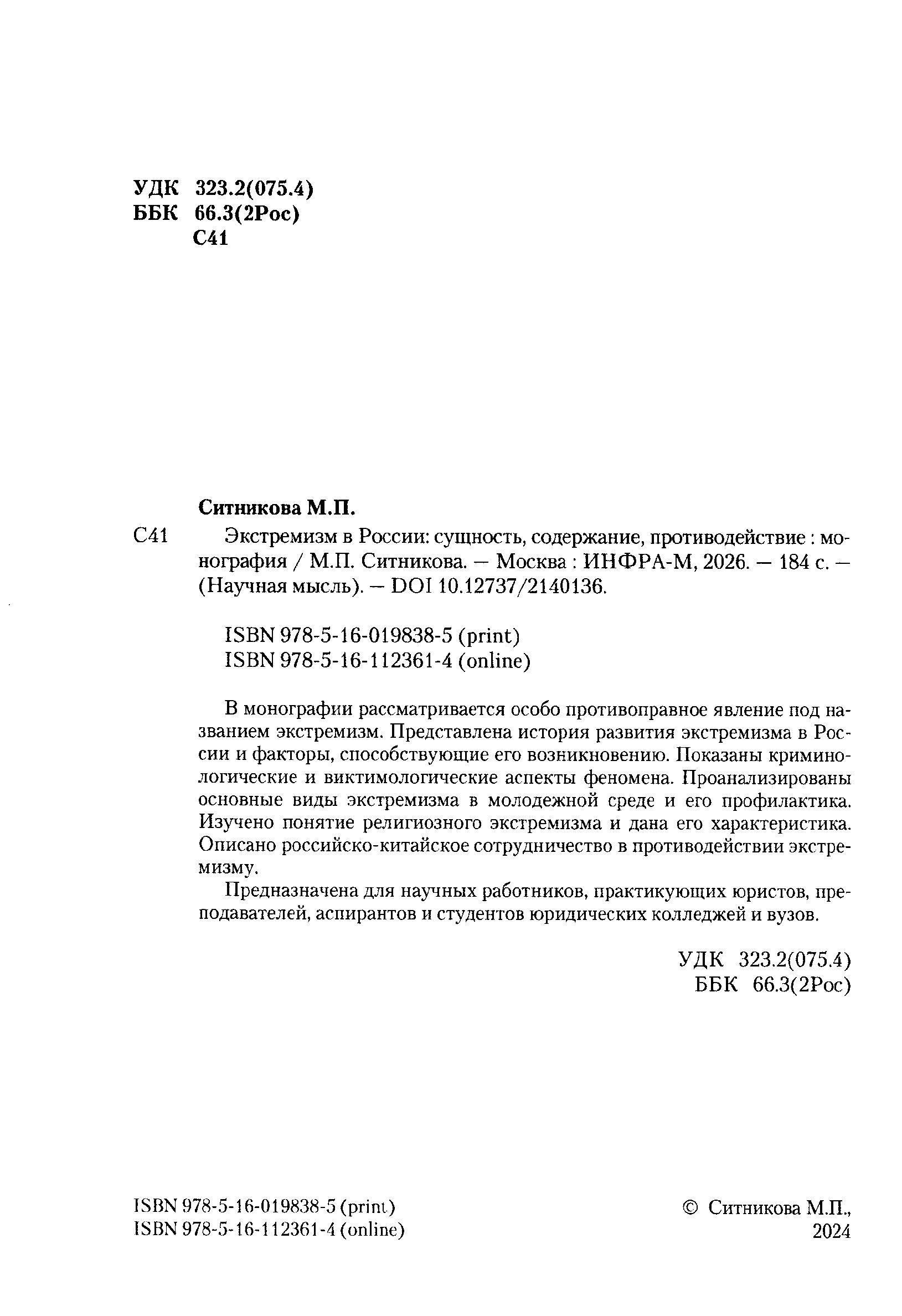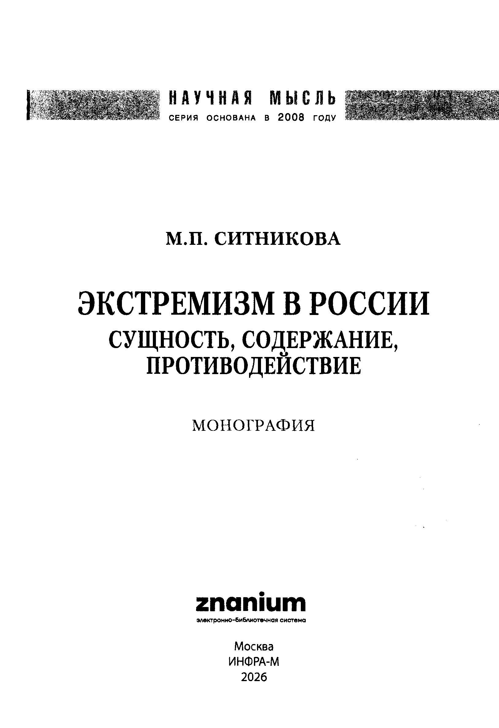 ЭКСТРЕМИЗМ В РОССИИ: СУЩНОСТЬ, СОДЕРЖАНИЕ, ПРОТИВОДЕЙСТВИЕ |