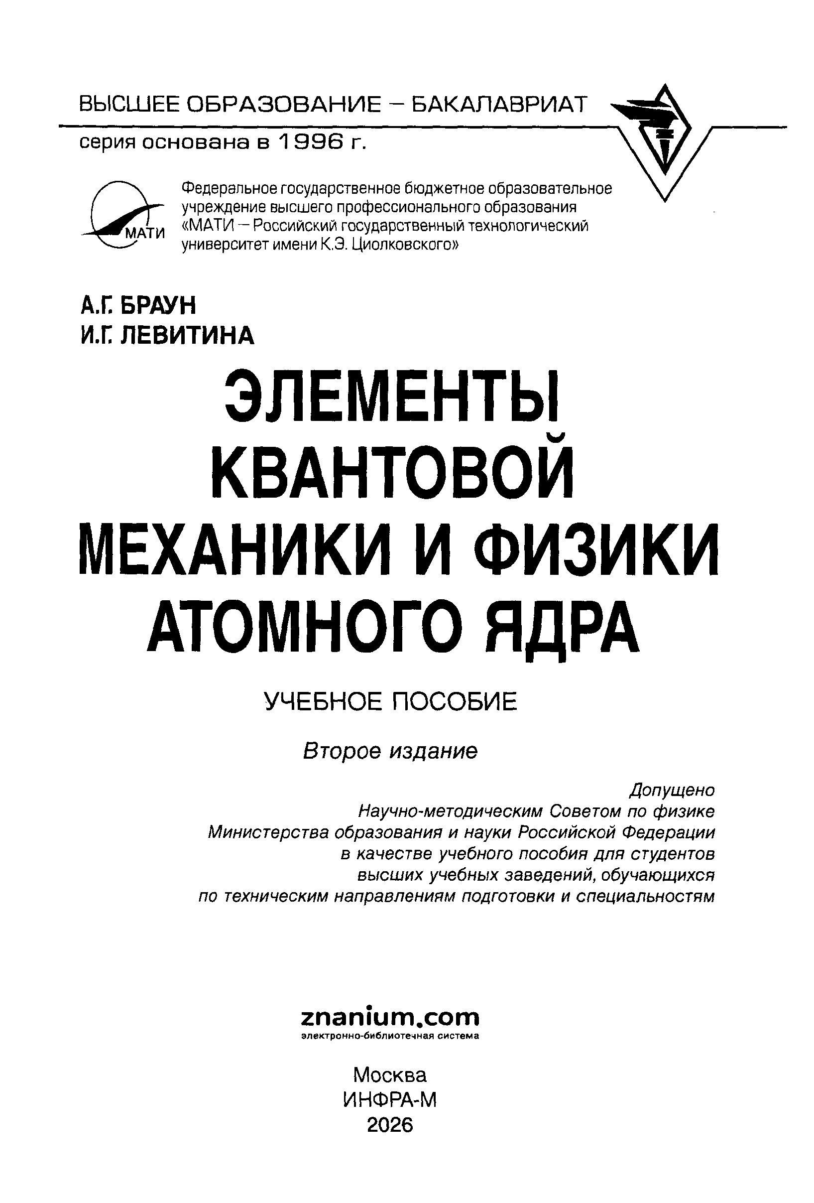 ЭЛЕМЕНТЫ КВАНТОВОЙ МЕХАНИКИ И ФИЗИКИ АТОМНОГО ЯДРА, ИЗД.2 |