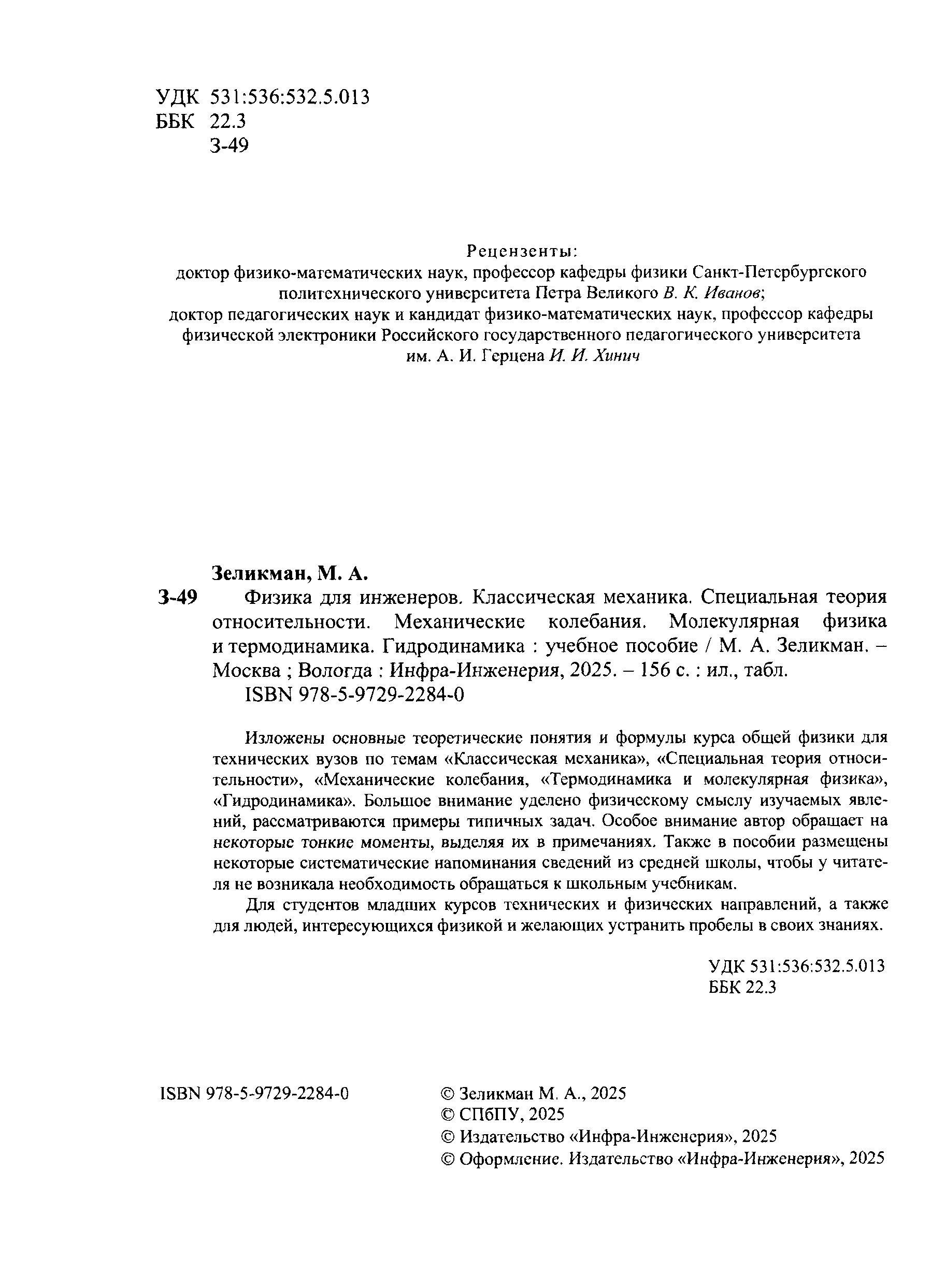 Физика для инженеров. Классическая механика. Специальная теория относительности. Механические колебания. Молекулярная физика и термодинамика. Гидродинамика |