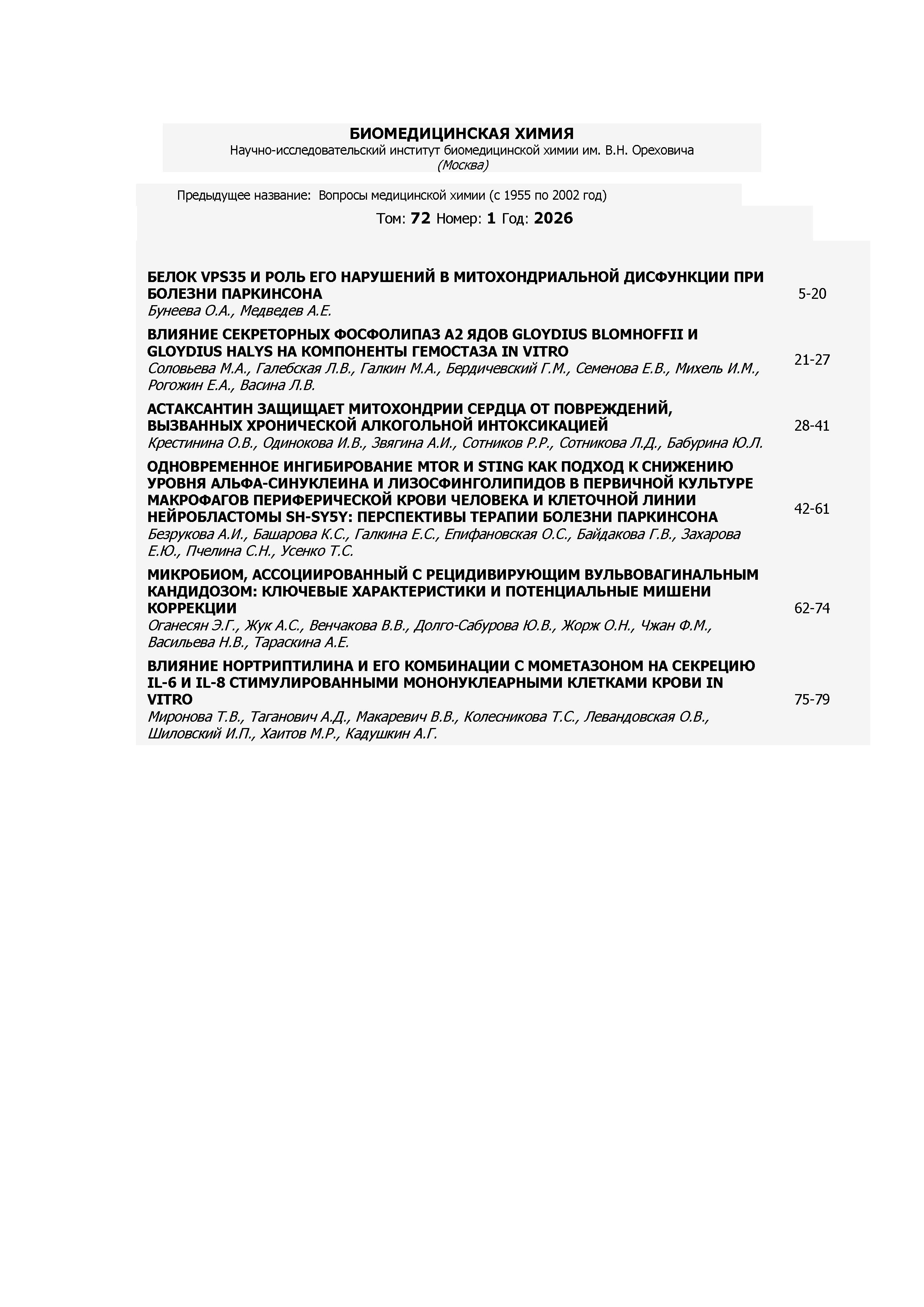 Биомедицинская химия 2026 Т.72 N 1