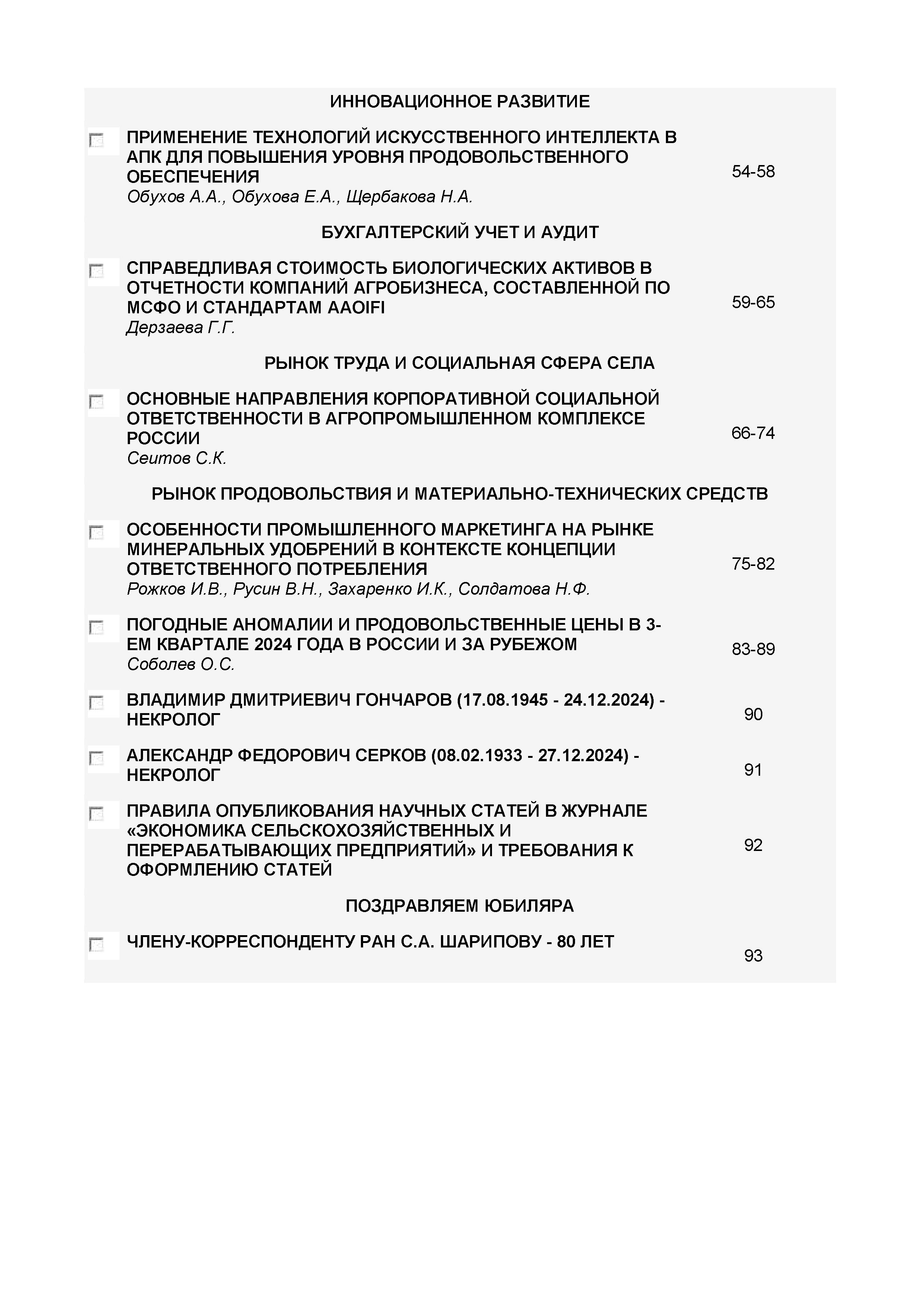 Экономика сельскохозяйственных и перерабатывающих предприятий 2025 № 1