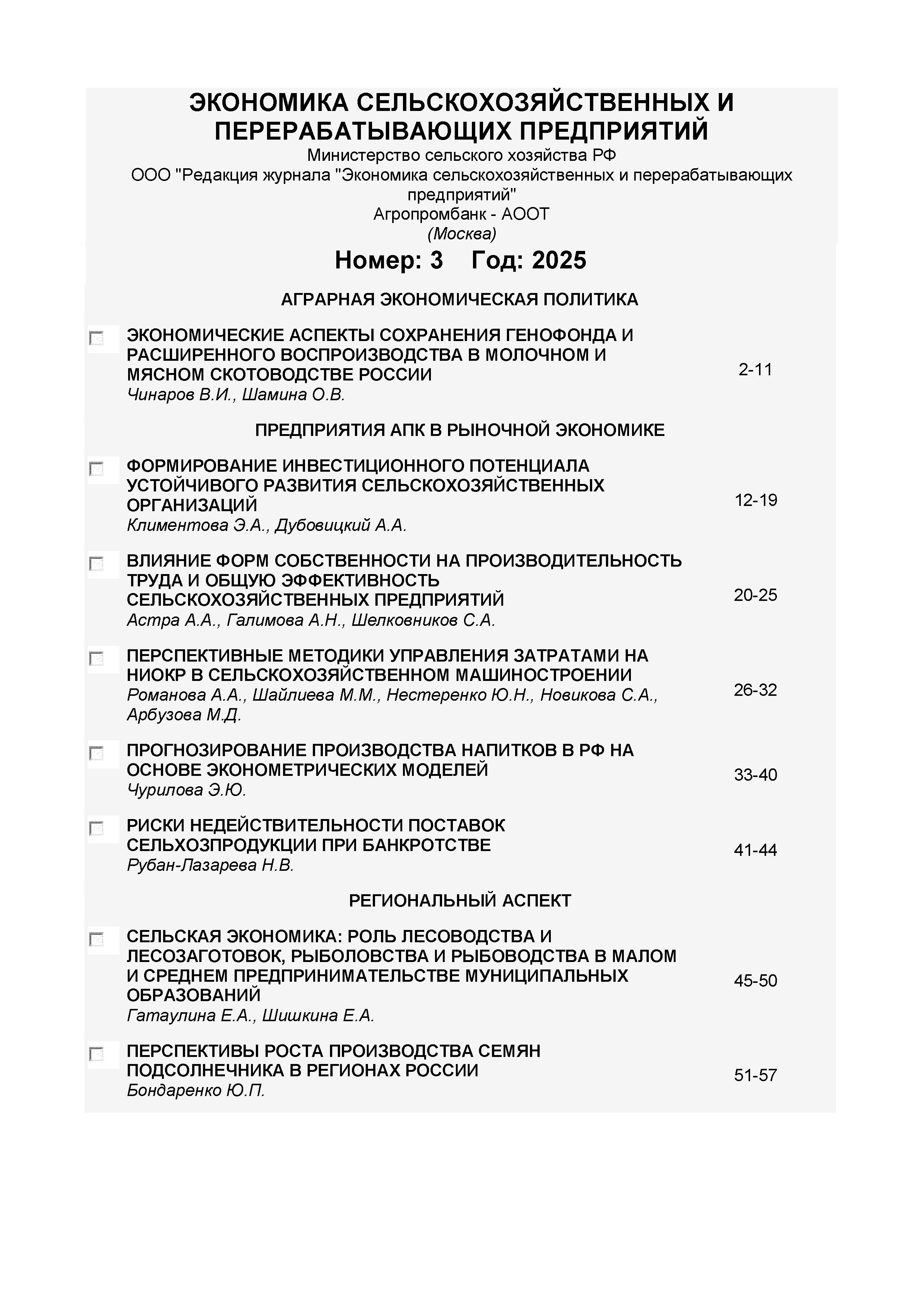 Экономика сельскохозяйственных и перерабатывающих предприятий 2025 № 3