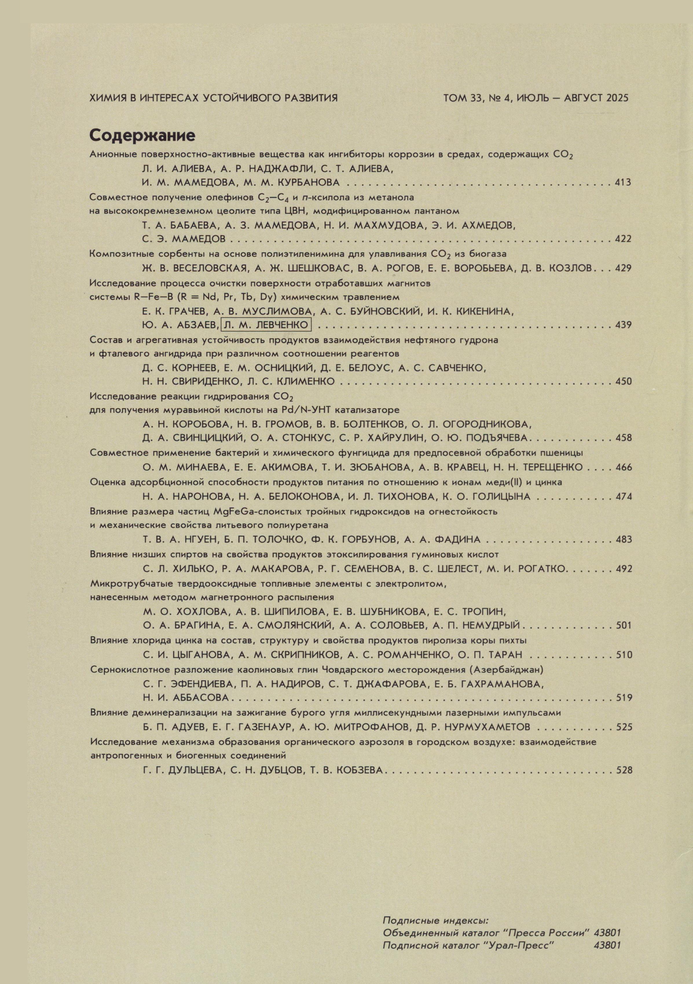 Химия в интересах устойчивого развития 2025 T. 33 № 4