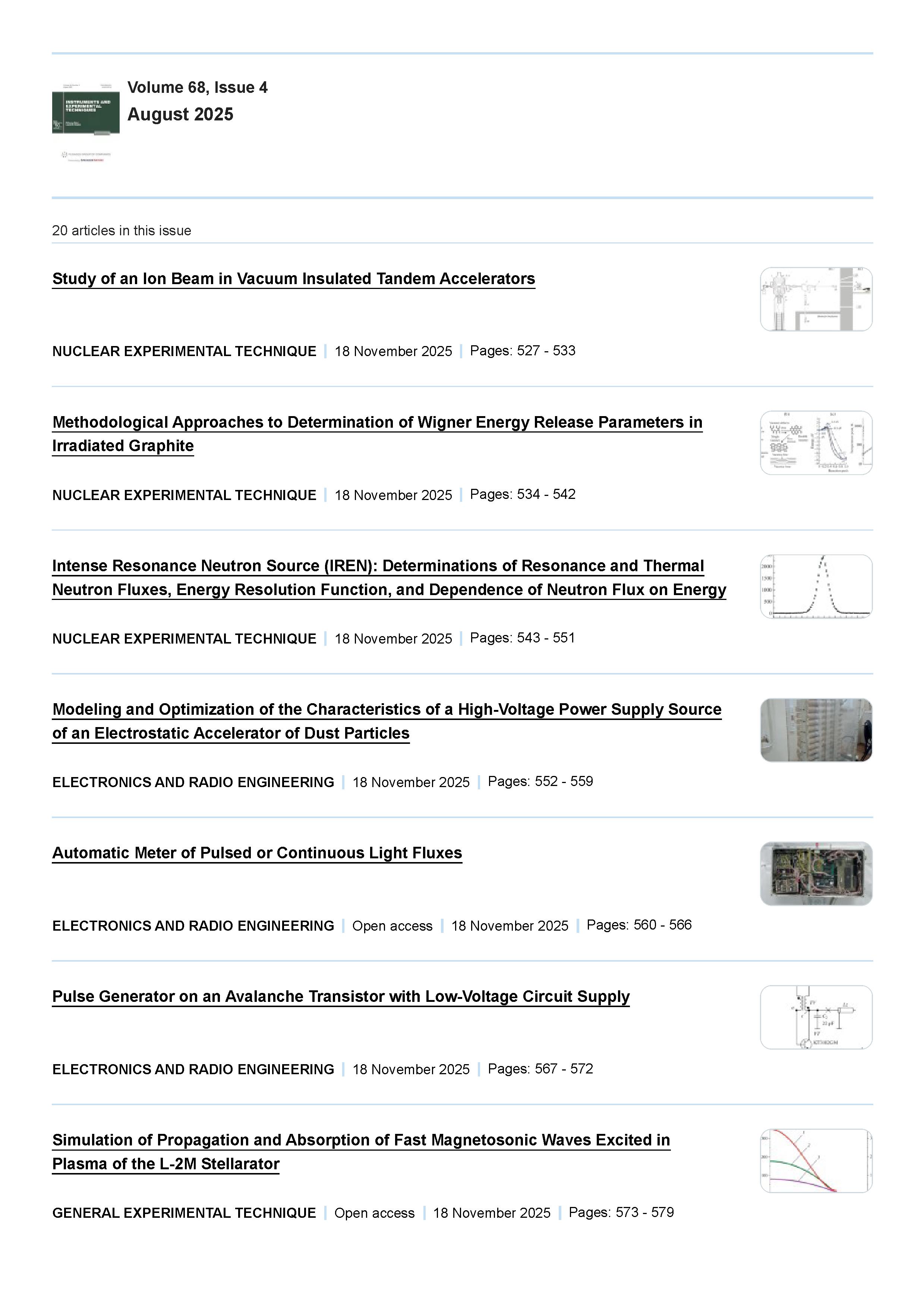 Instruments and Experimental Techniques 2025 Vol. 68 Is. 4