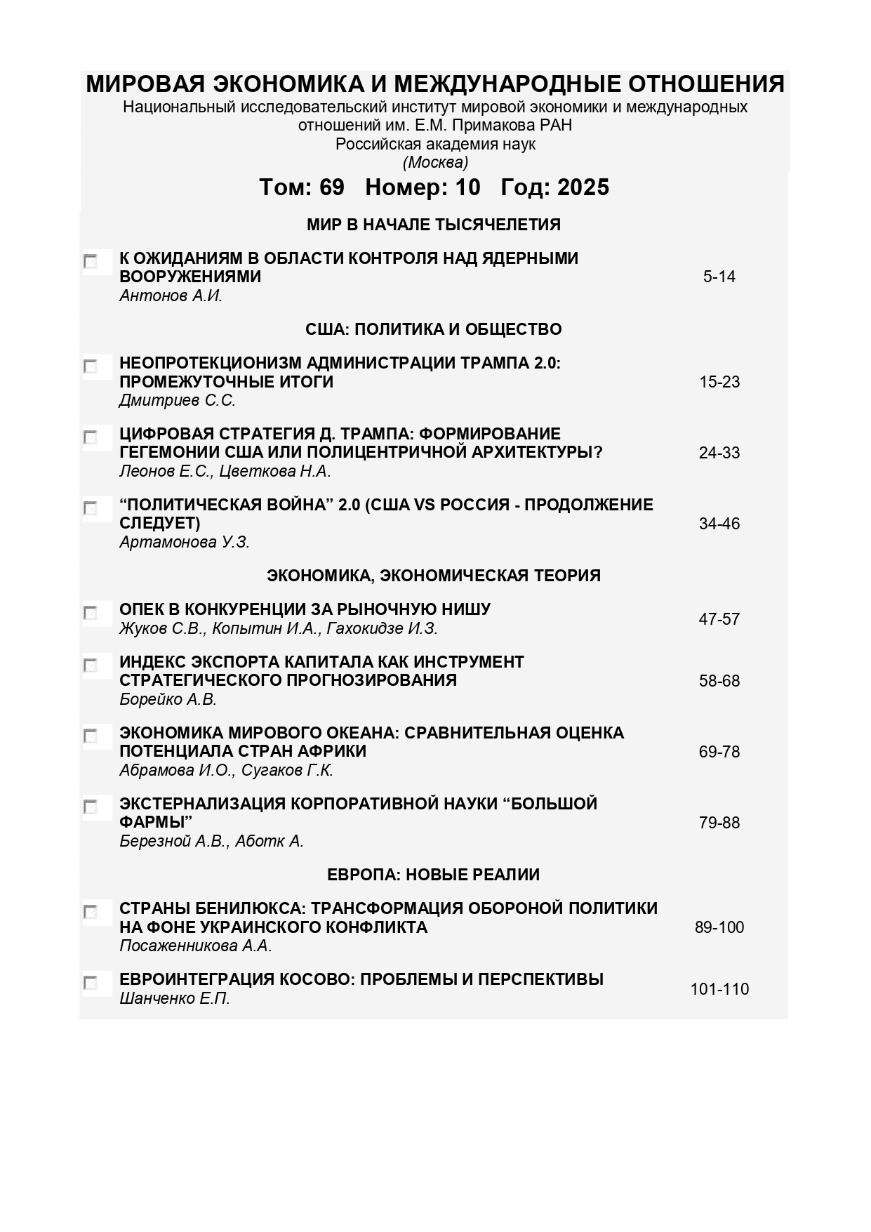 Мировая экономика и международные отношения 2025 №10