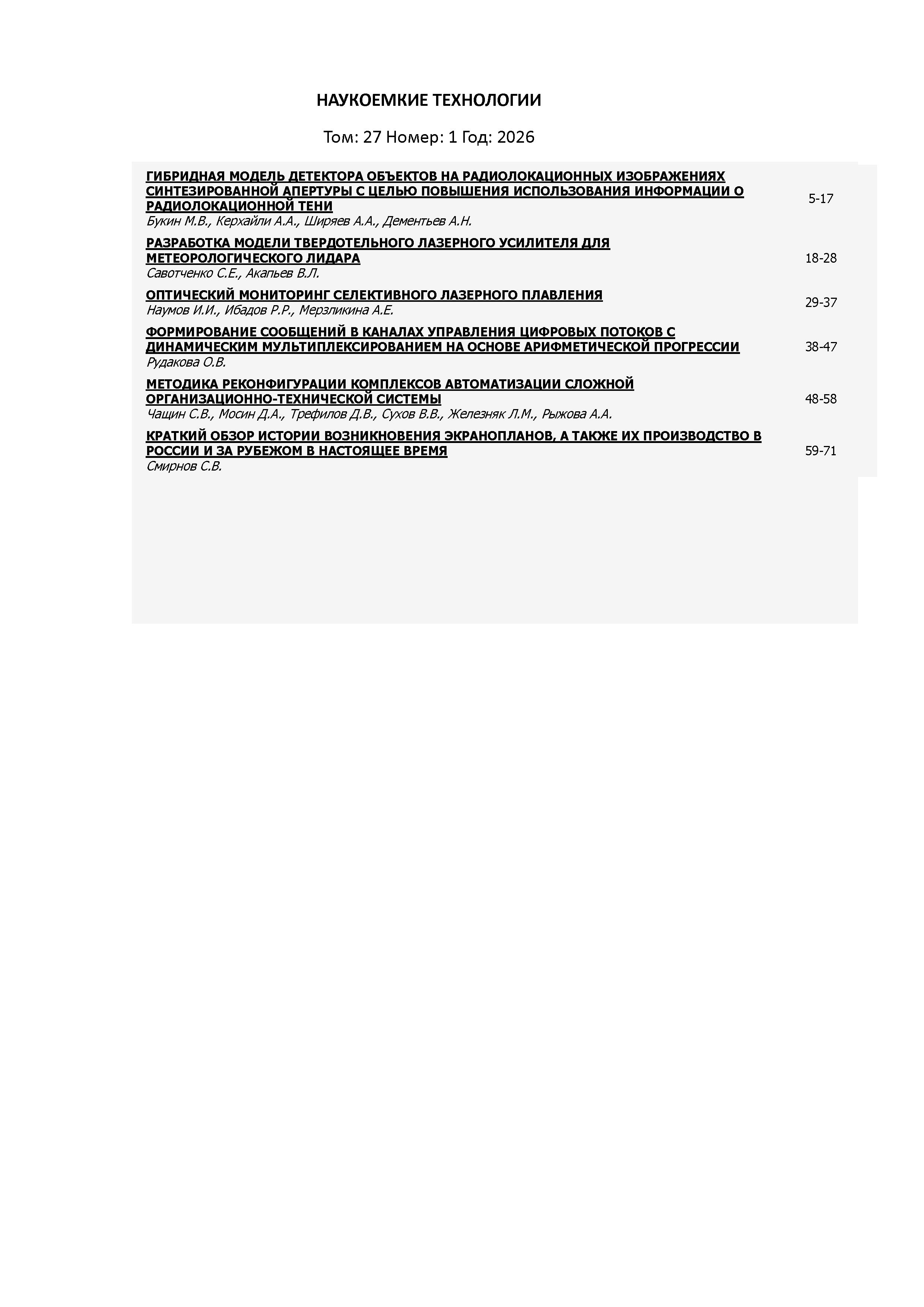 Наукоемкие технологии 2026 т. 27 № 1