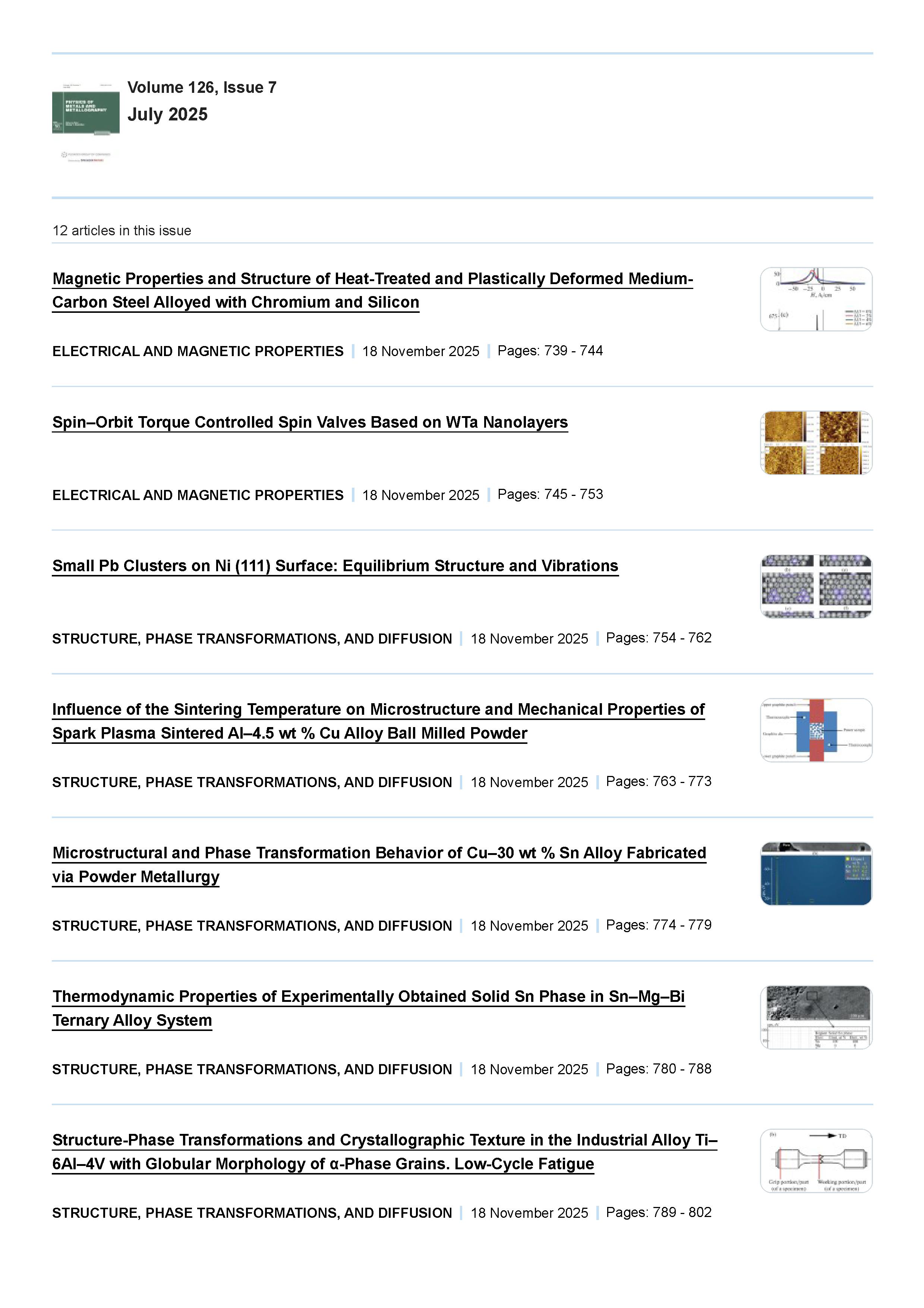 Physics of Metals and Metallography 2025 Vol. 126 Is. 7