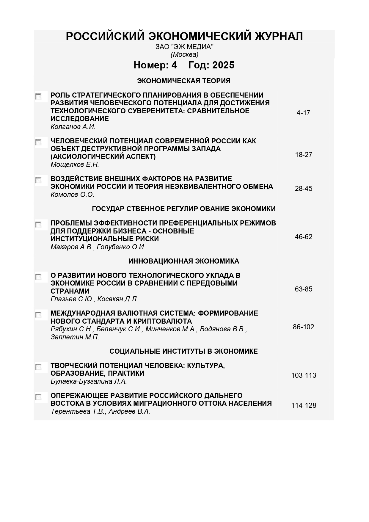 Российский экономический журнал 2025 № 4