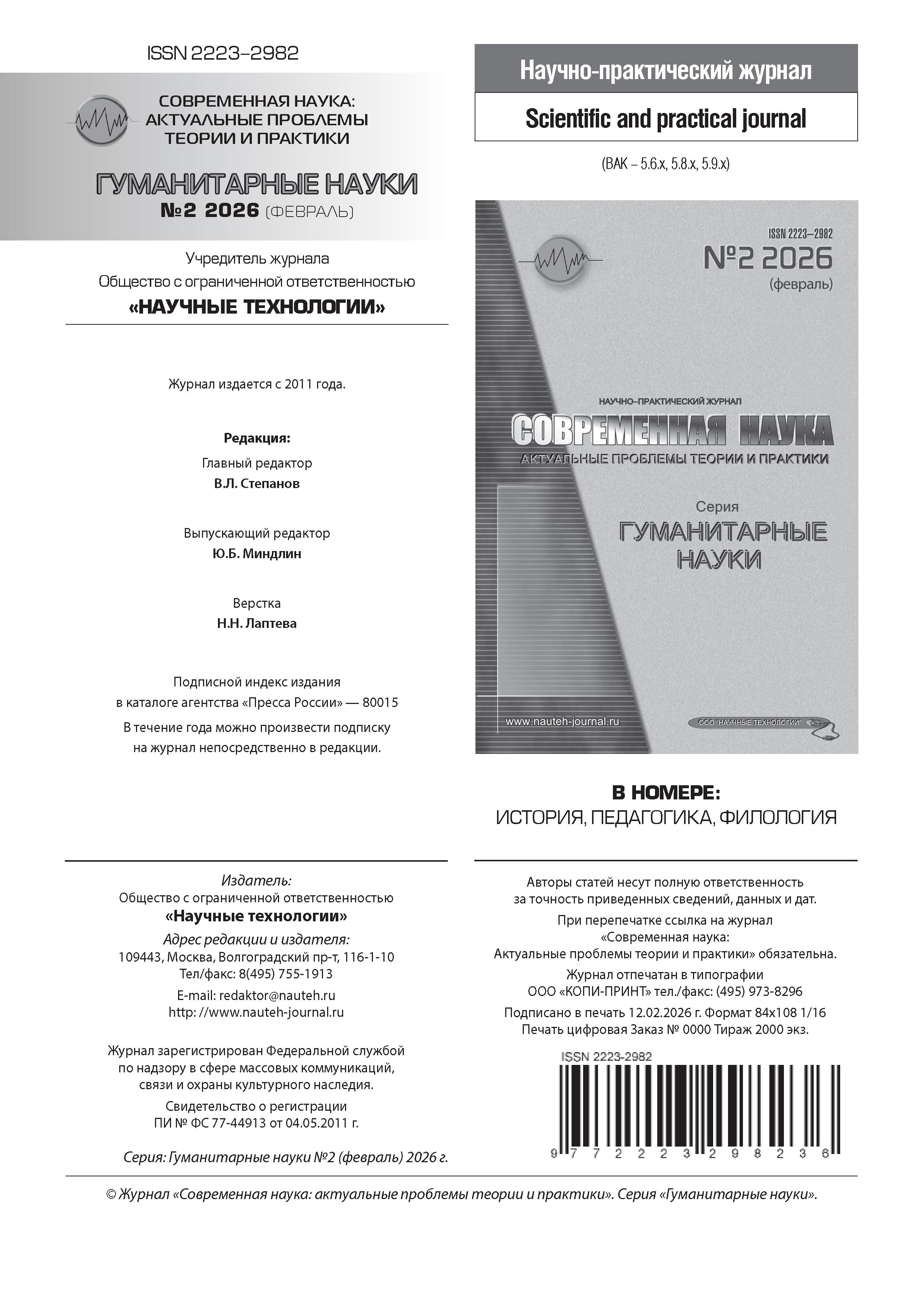 Современная наука: актуальные проблемы теории и практики. Сер. Гуманитарные науки 2026 N2