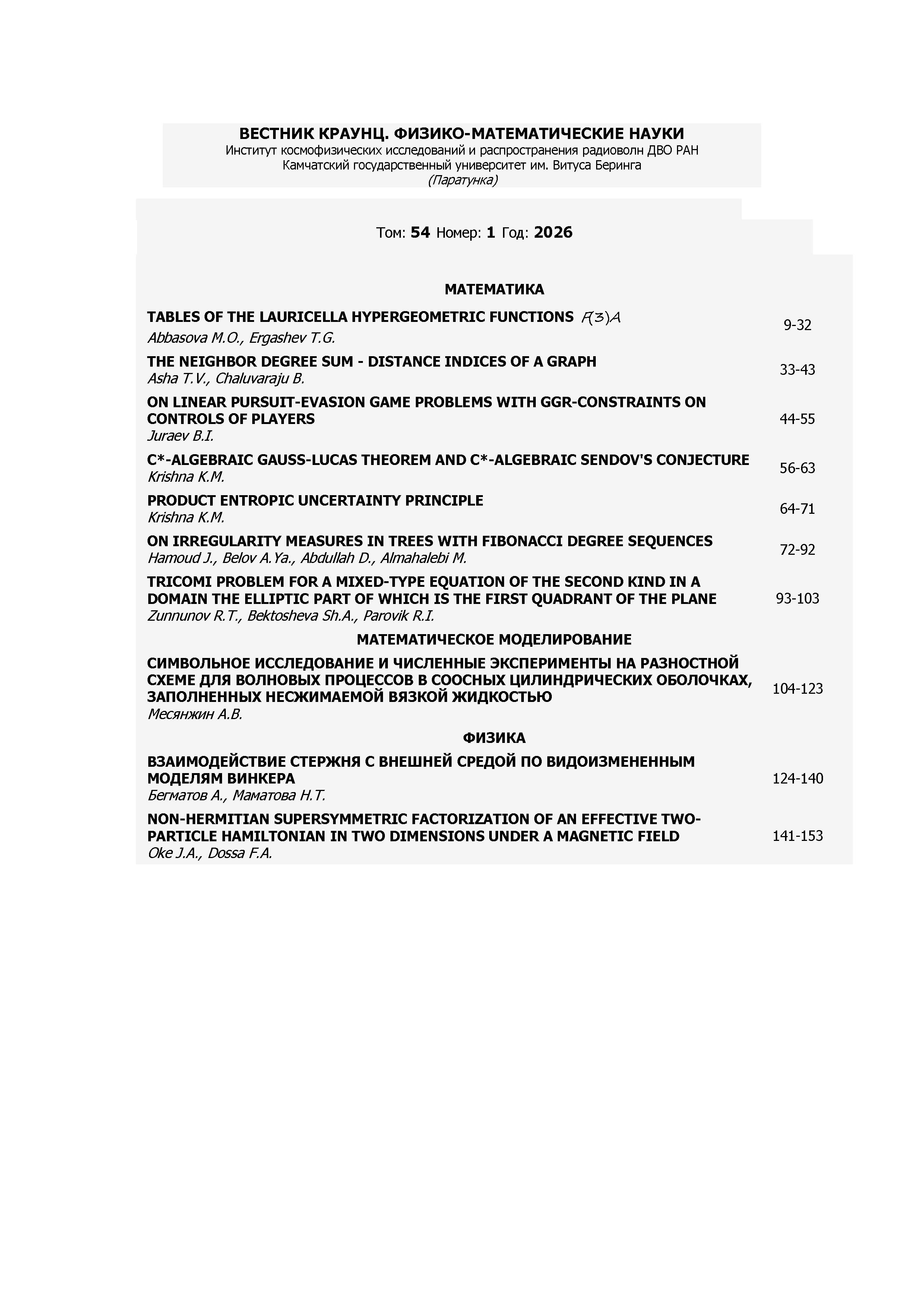 Вестник КРАУНЦ. Физико-математические науки 2026 Т54 N 1