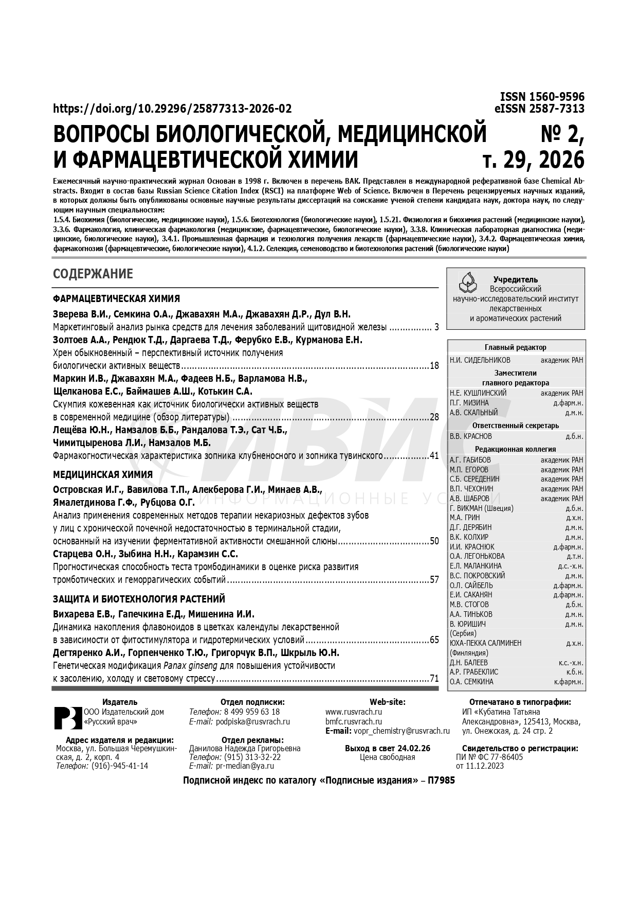 Вопросы биологической, медицинской и фармацевтической химии 2026 № 2