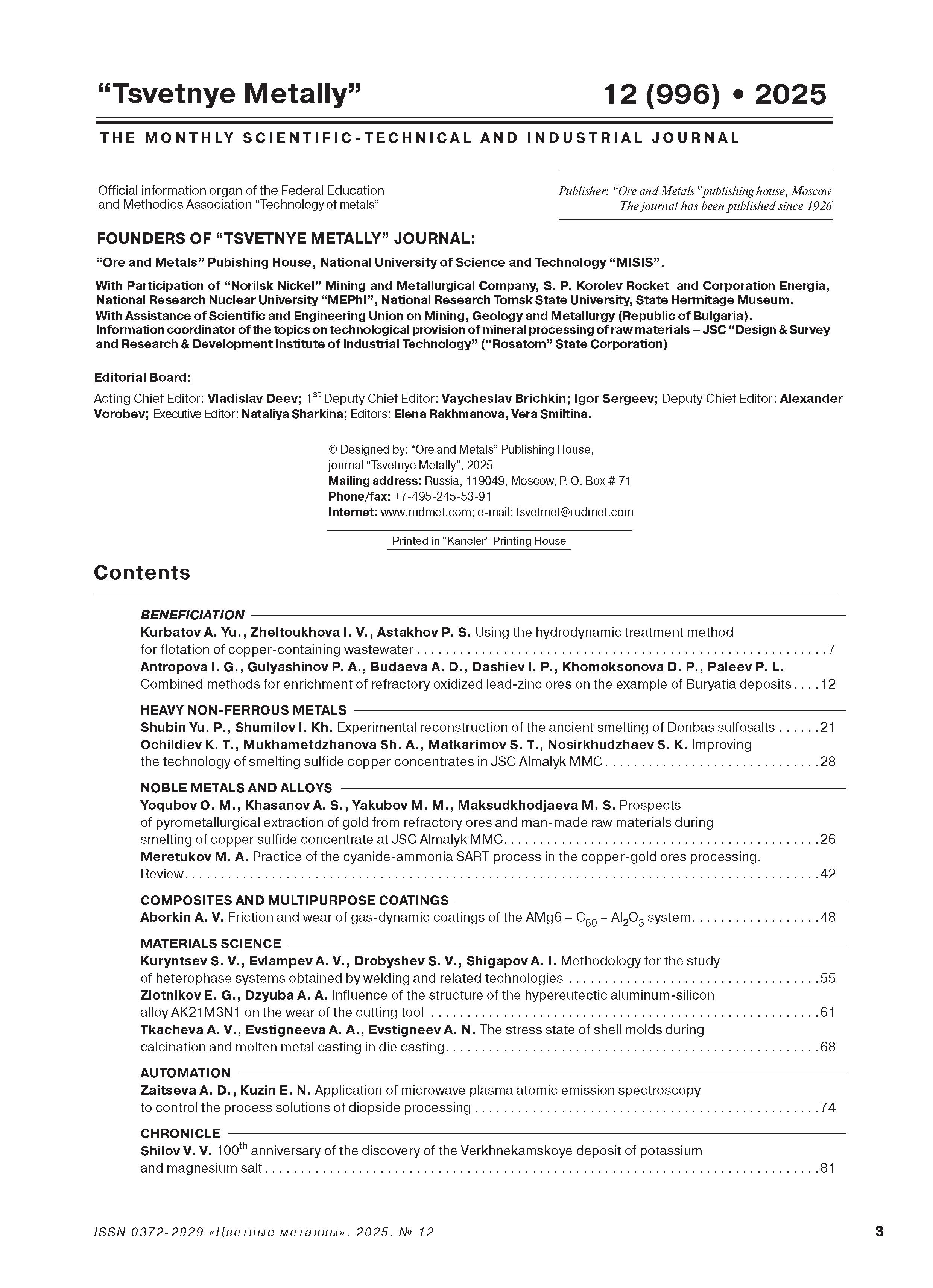 | Цветные металлы 2025 № 12 | Цветные металлы 2025 № 12 | 2025 | 12 |