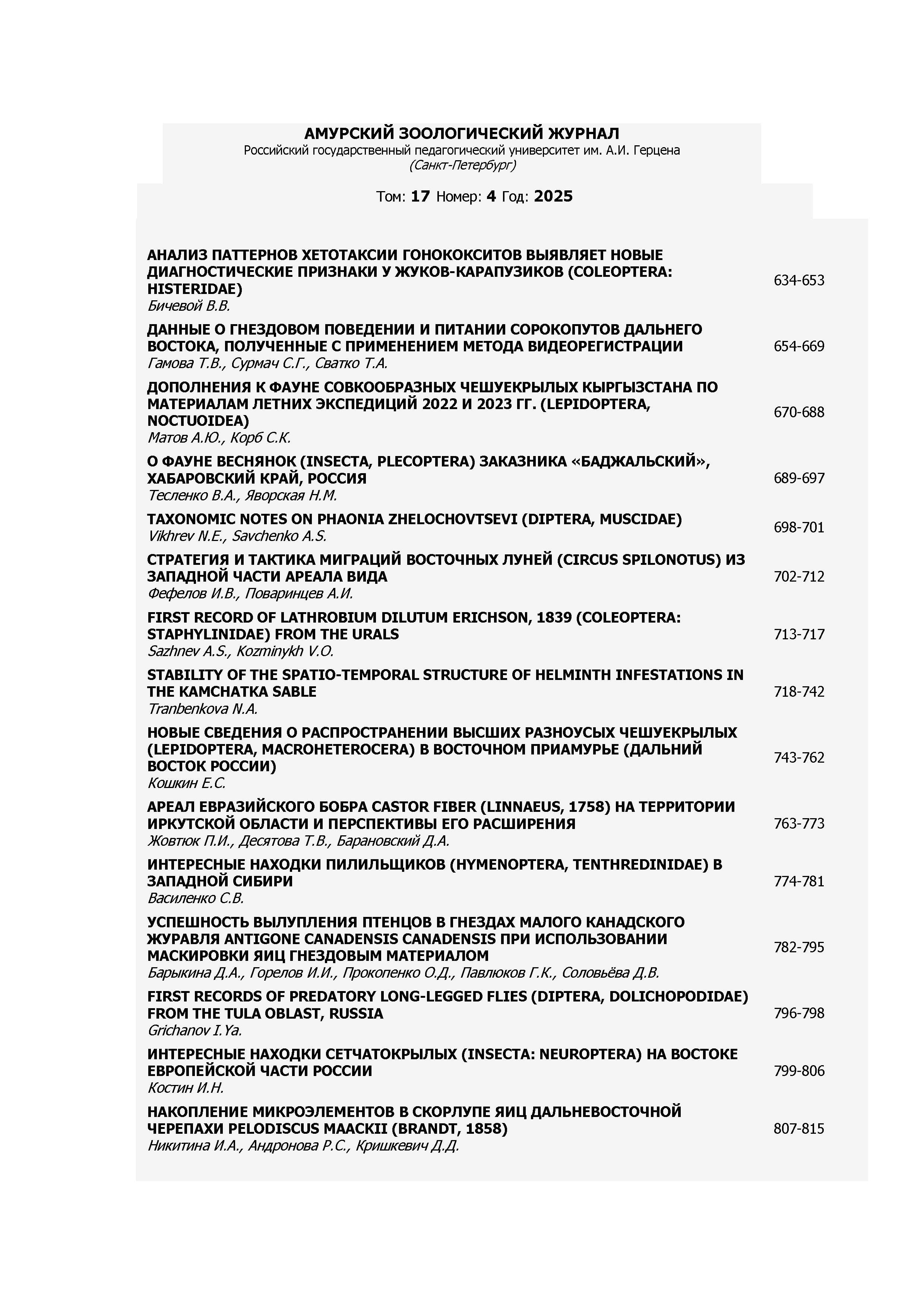 Амурский зоологический журнал 2025 N 4 |