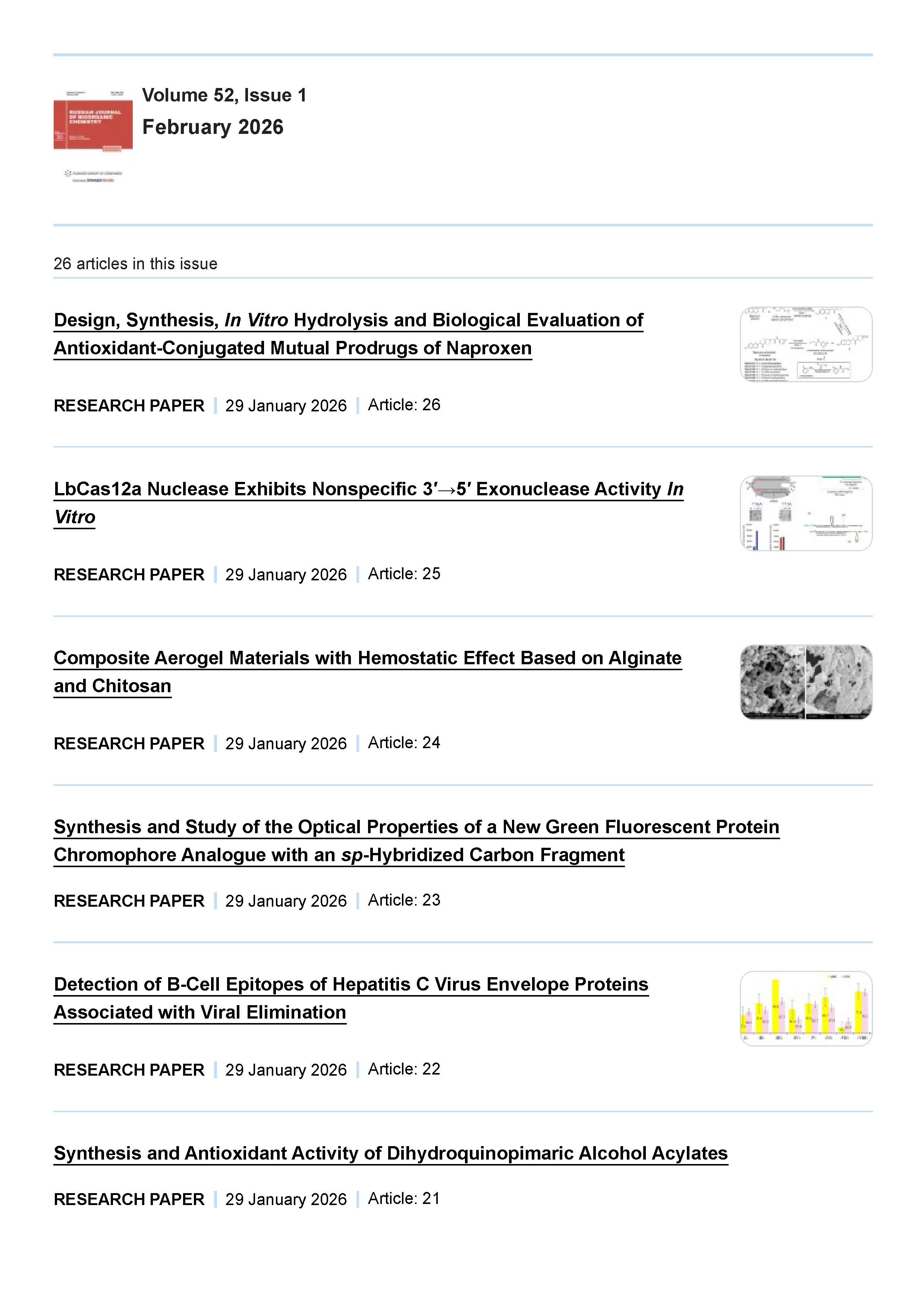 Russian Journal of Bioorganic Chemistry 2026 Vol. 52 № 1 |