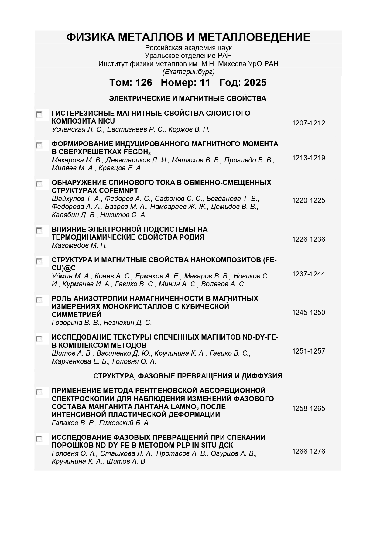 Физика металлов и металловедение 2025 Т.126 №11 |