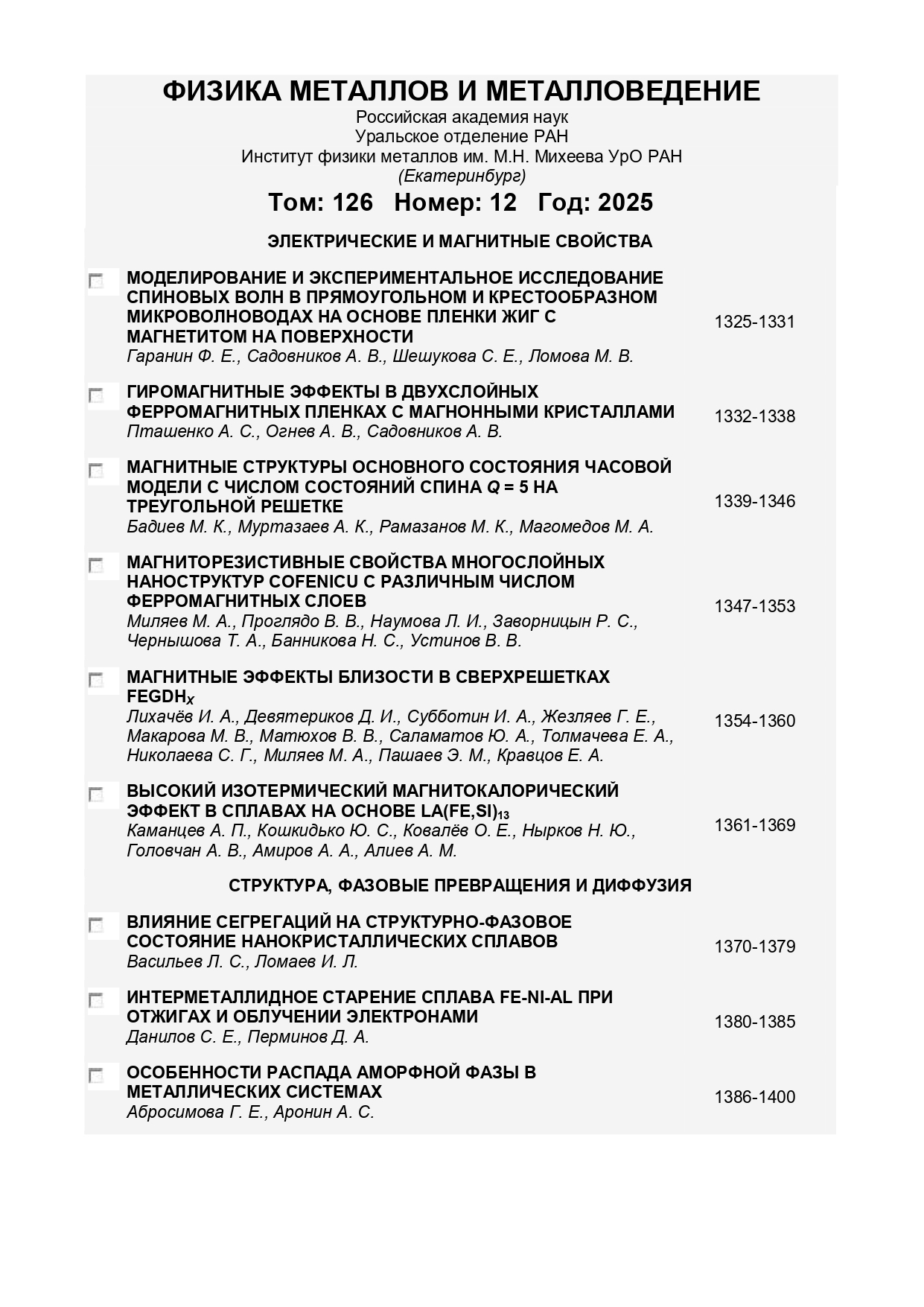 Физика металлов и металловедение 2025 Т.126 №12 |
