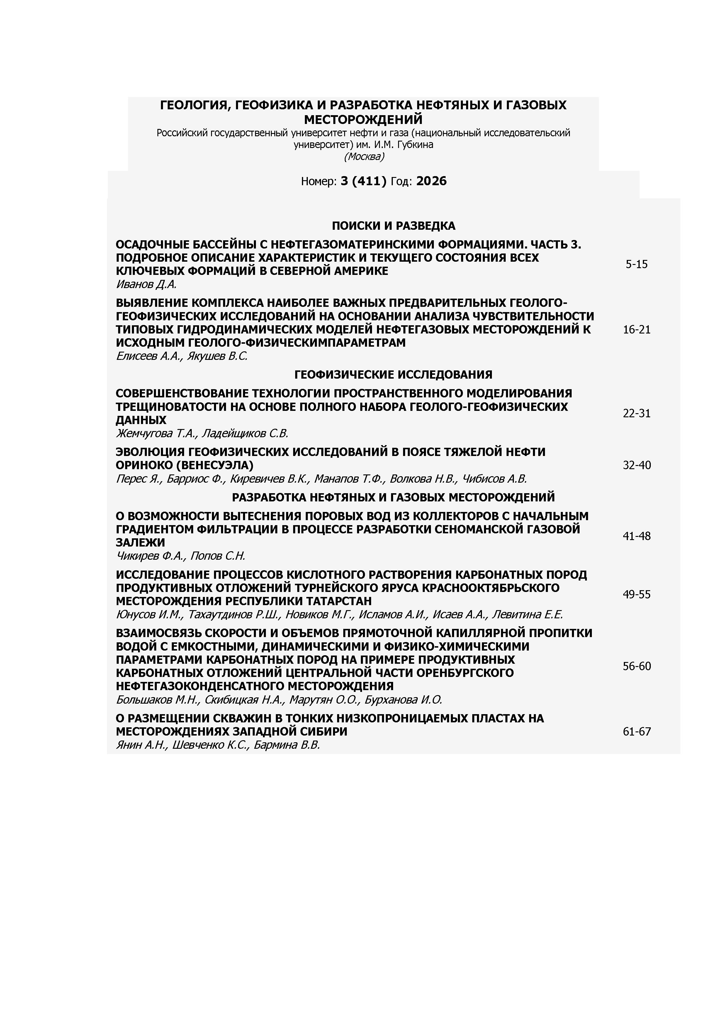 Геология, геофизика и разработка нефтяных и газовых месторождений 2026 N 3 |