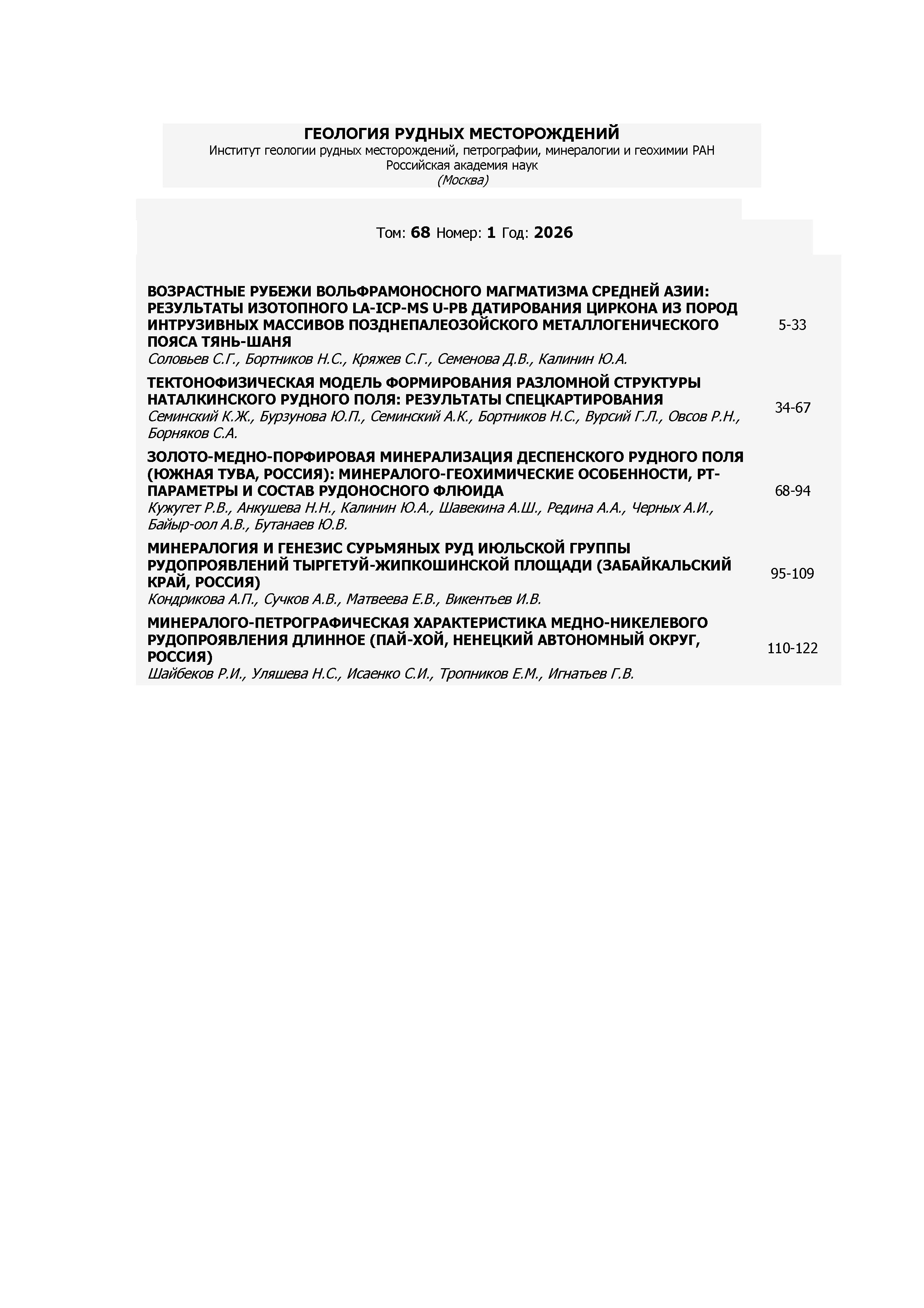 Геология рудных месторождений 2026 Т. 68 N 1 |