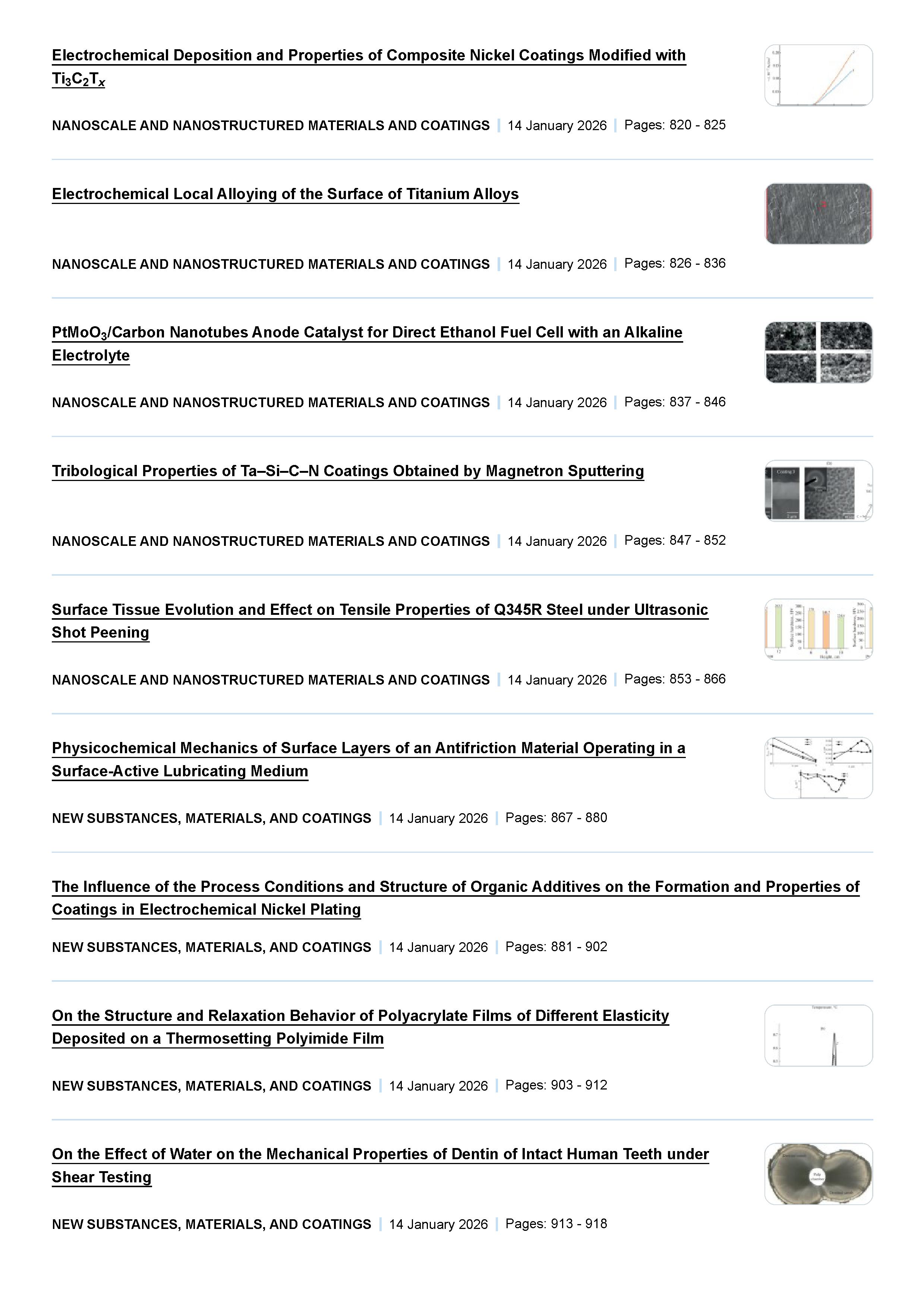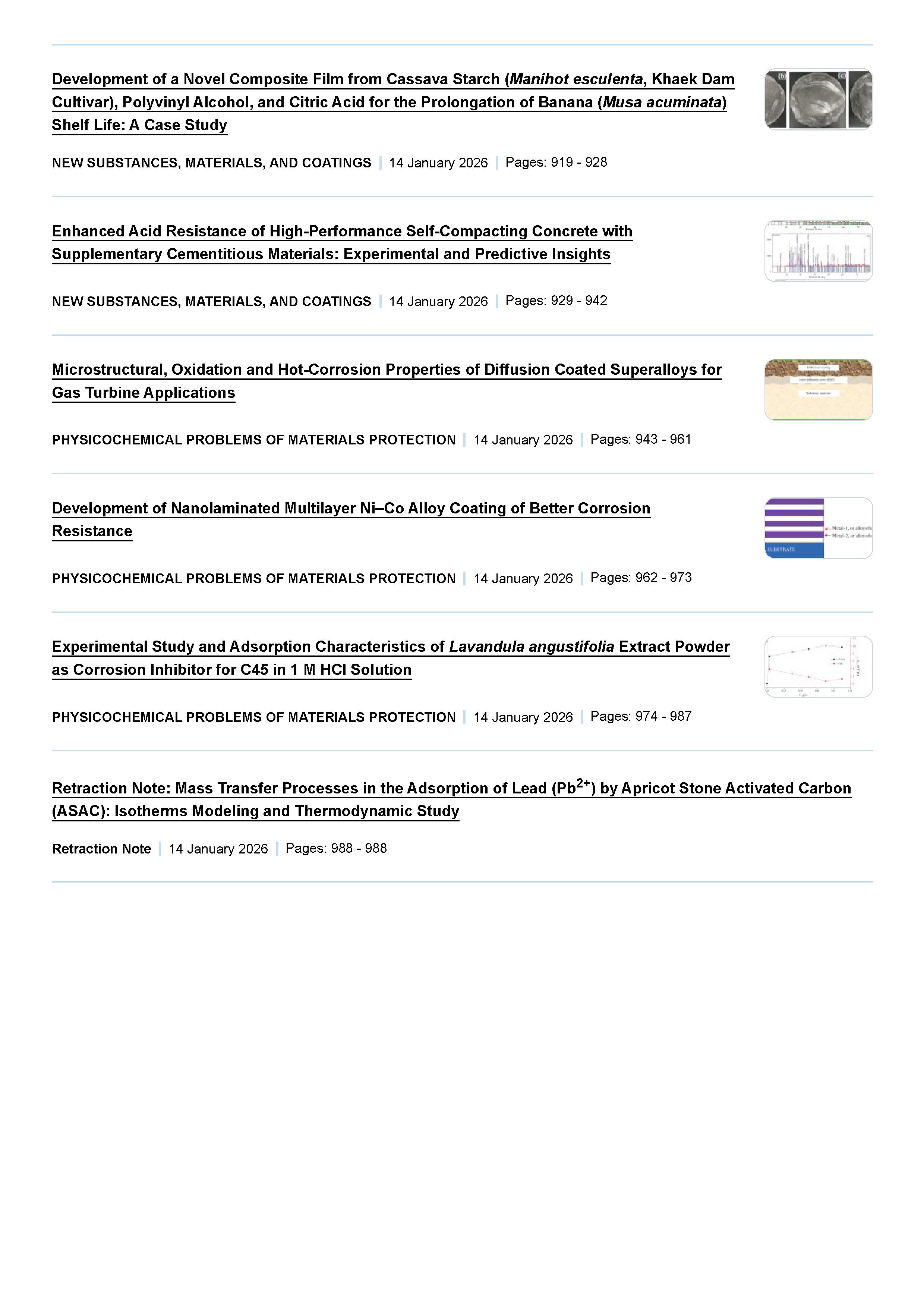 Protection of Metals and Physical Chemistry of Surfaces 2025 Vol. 61 Is. 4 |