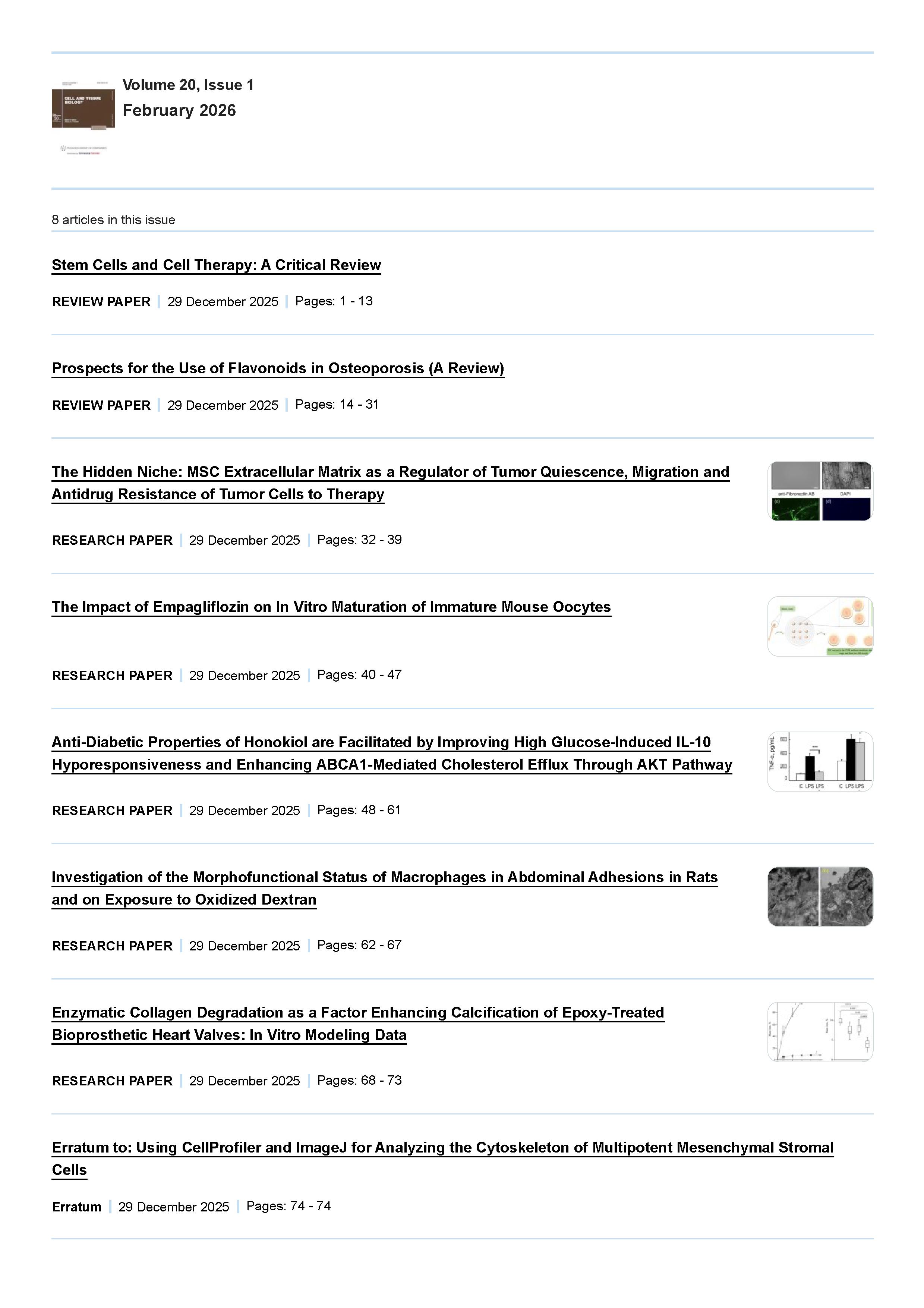 Cell and Tissue Biology 2026 Vol. 20 Is. 1 |