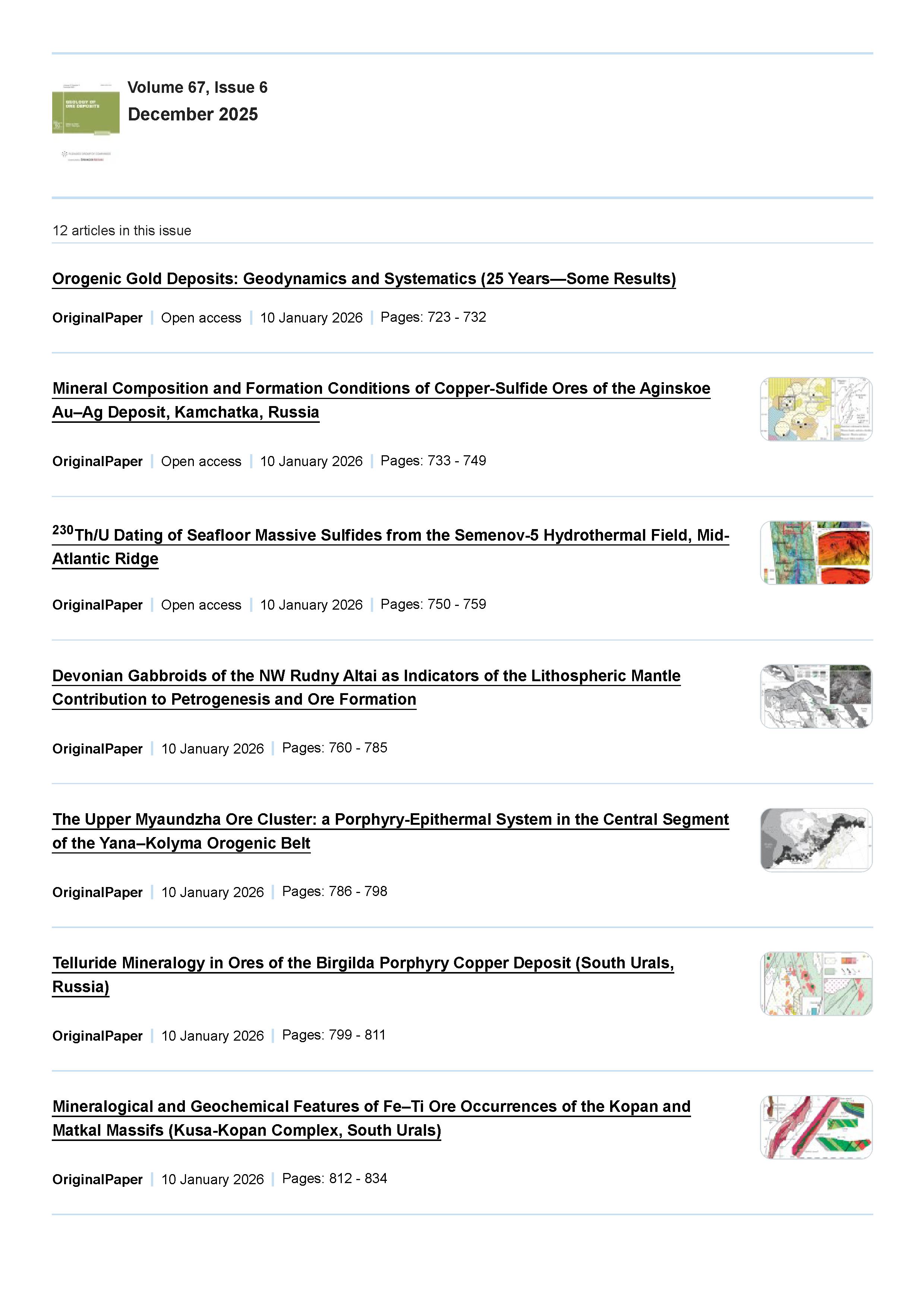 Geology of Ore Deposits 2025 Vol. 67 Is. 6 |