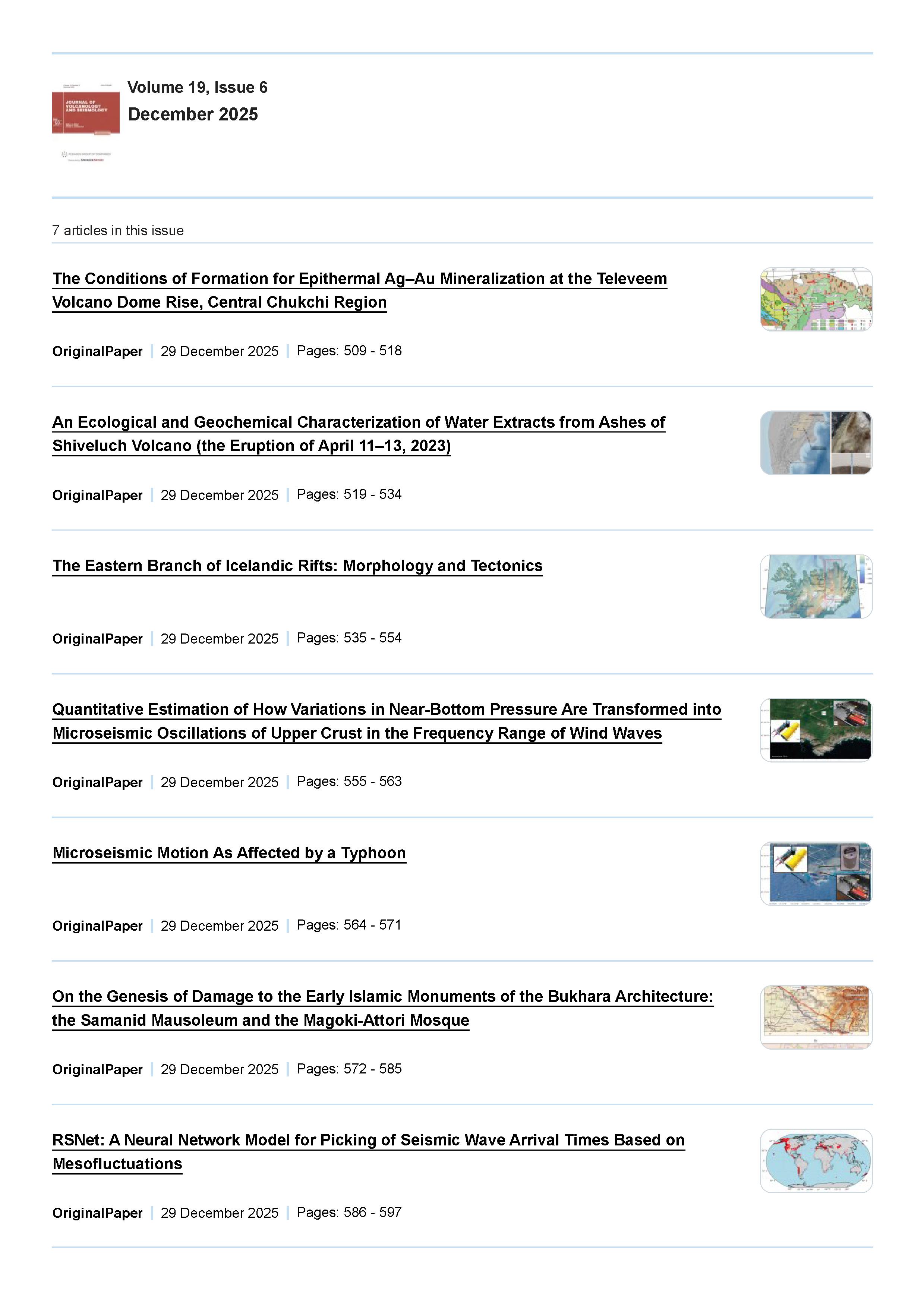 Journal of Volcanology and Seismology 2025 Vol. 19 Is. 6 |