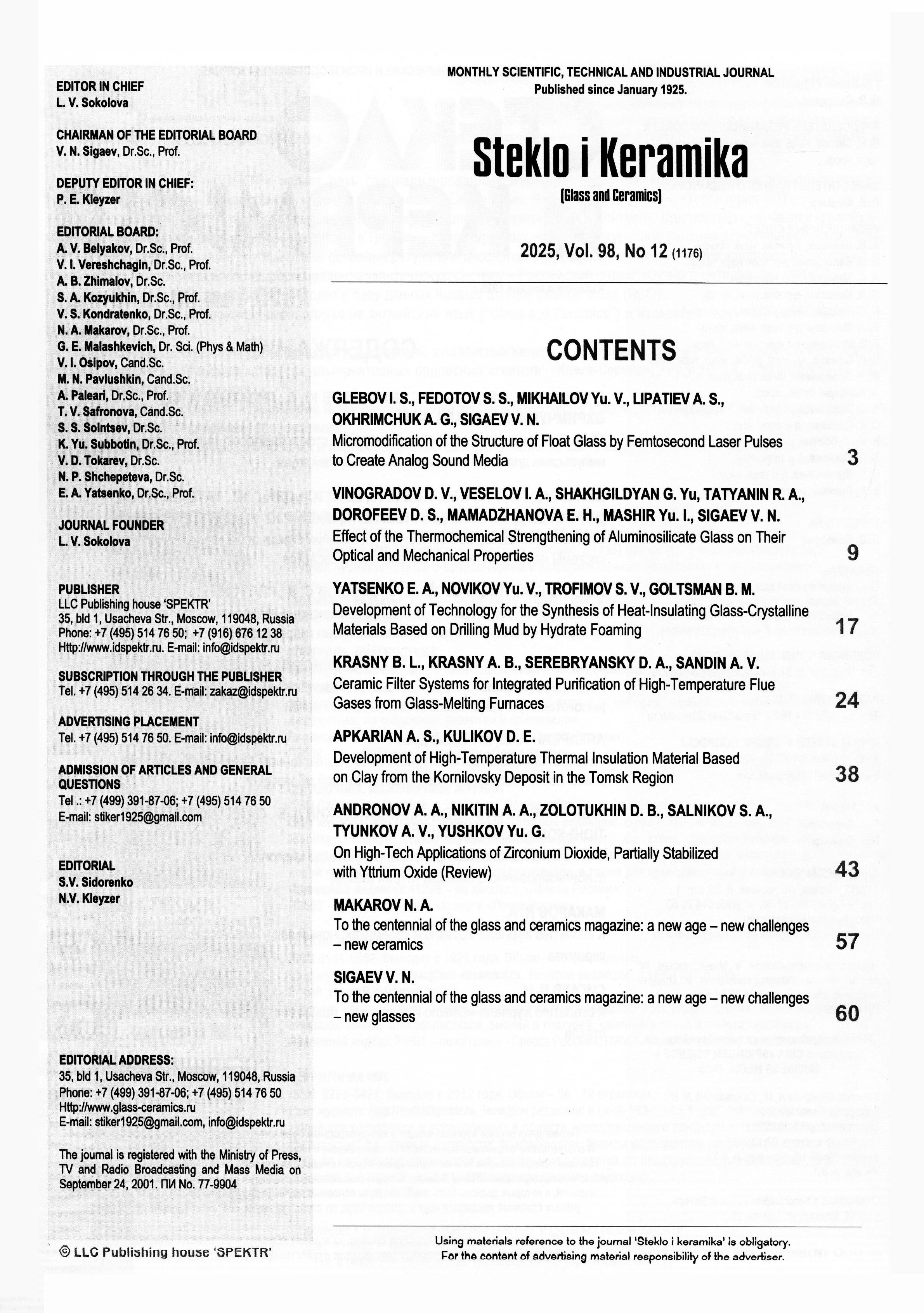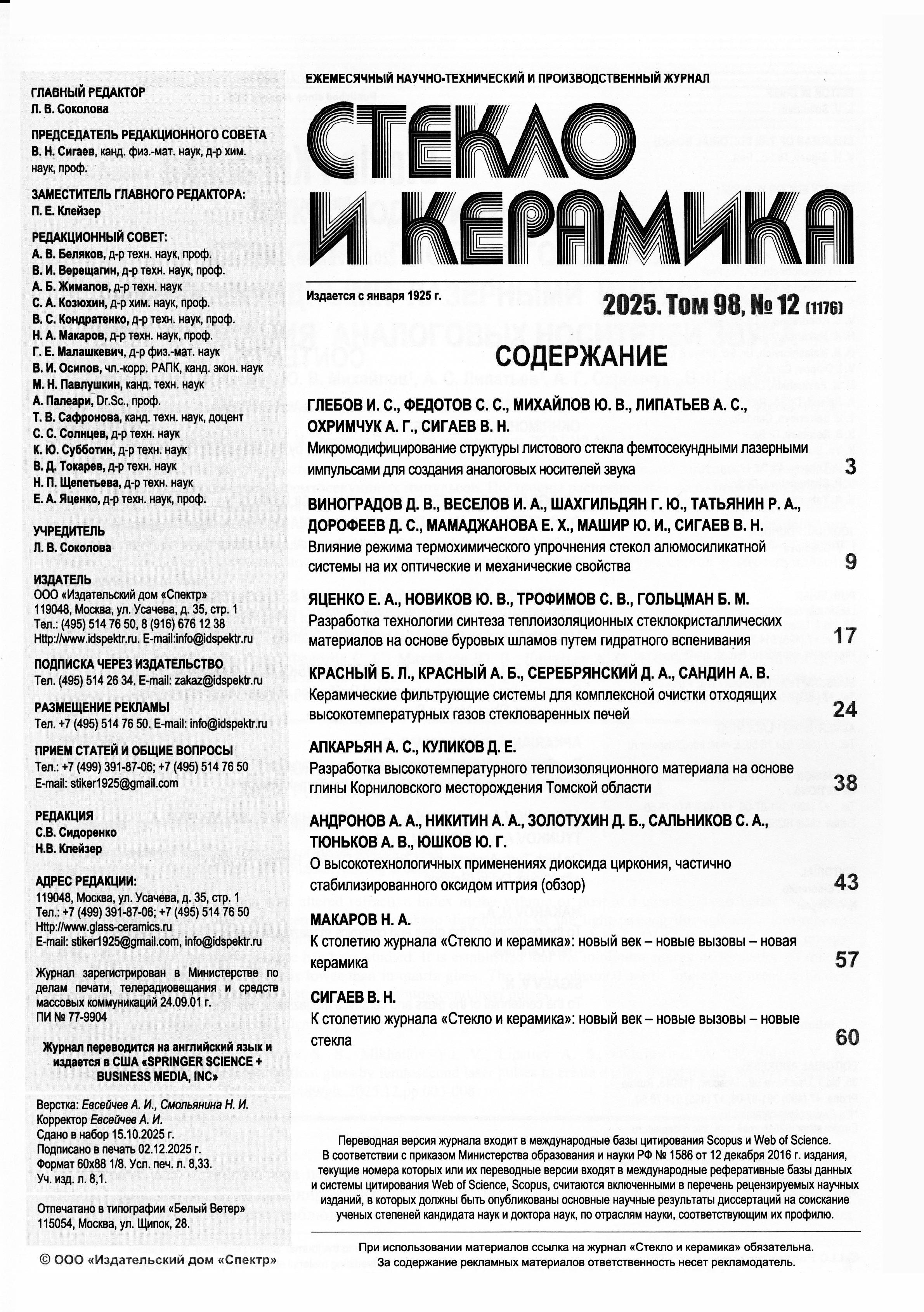 Стекло и керамика 2025 Т. 98 № 12 |