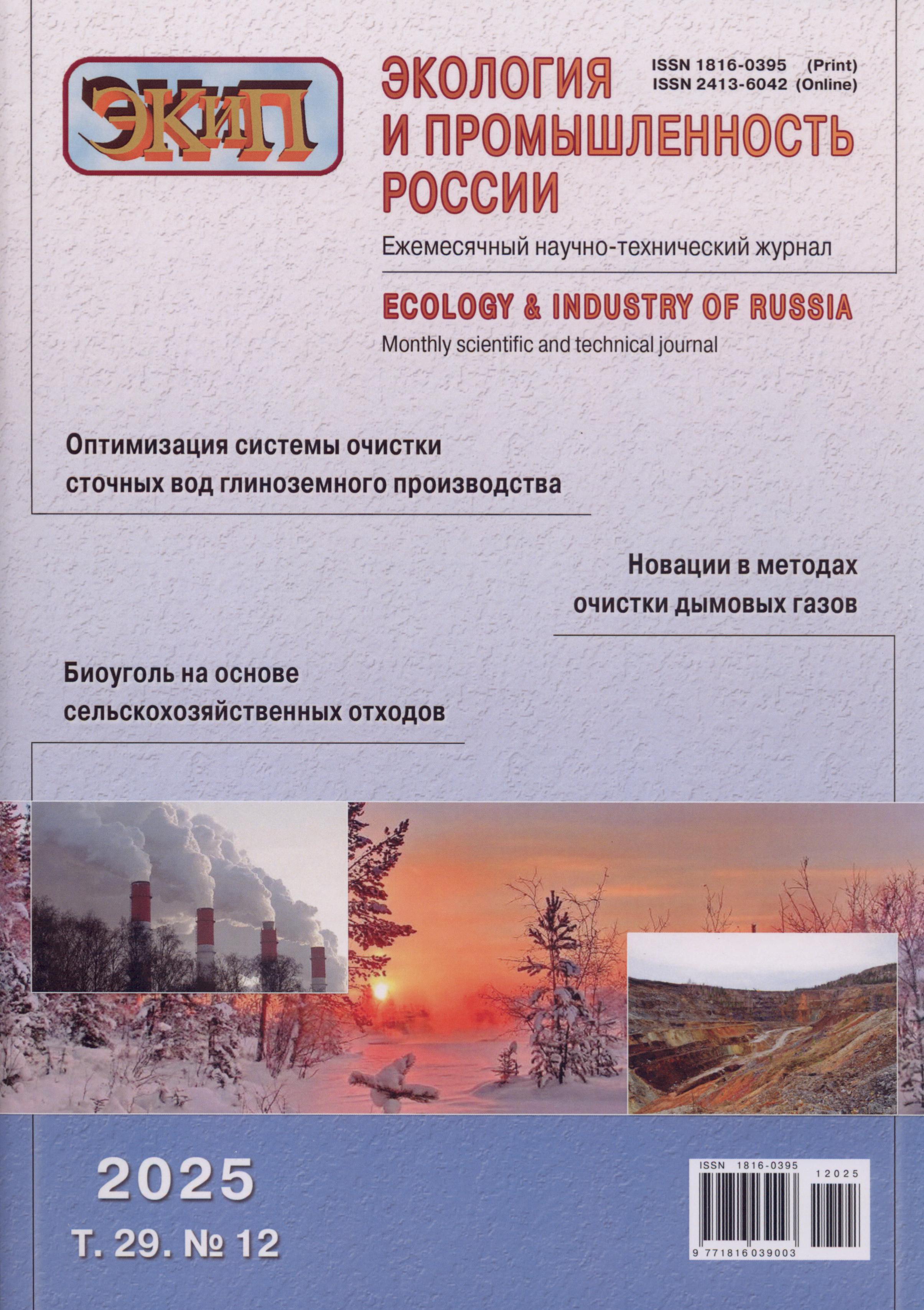 23.01.2026-16:22 Экология и промышленность России 2025 Т. 29 № 12 Экология и промышленность России 2025 Т. 29 № 12 2025 12 ,
