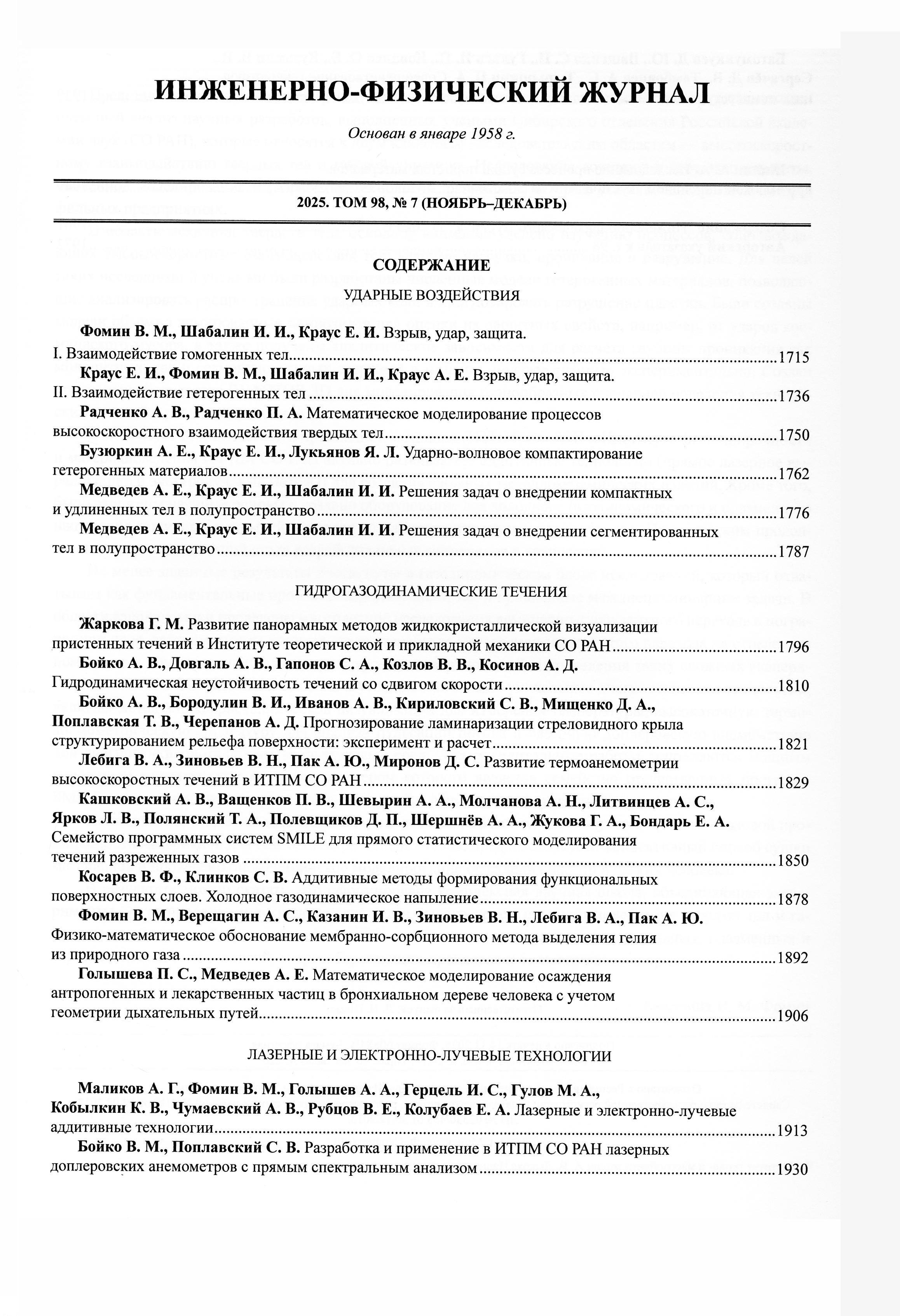23.01.2026-16:34 Инженерно-физический журнал 2025 Т.98 № 7 Инженерно-физический журнал 2025 Т.98 № 7 2025 7 ,