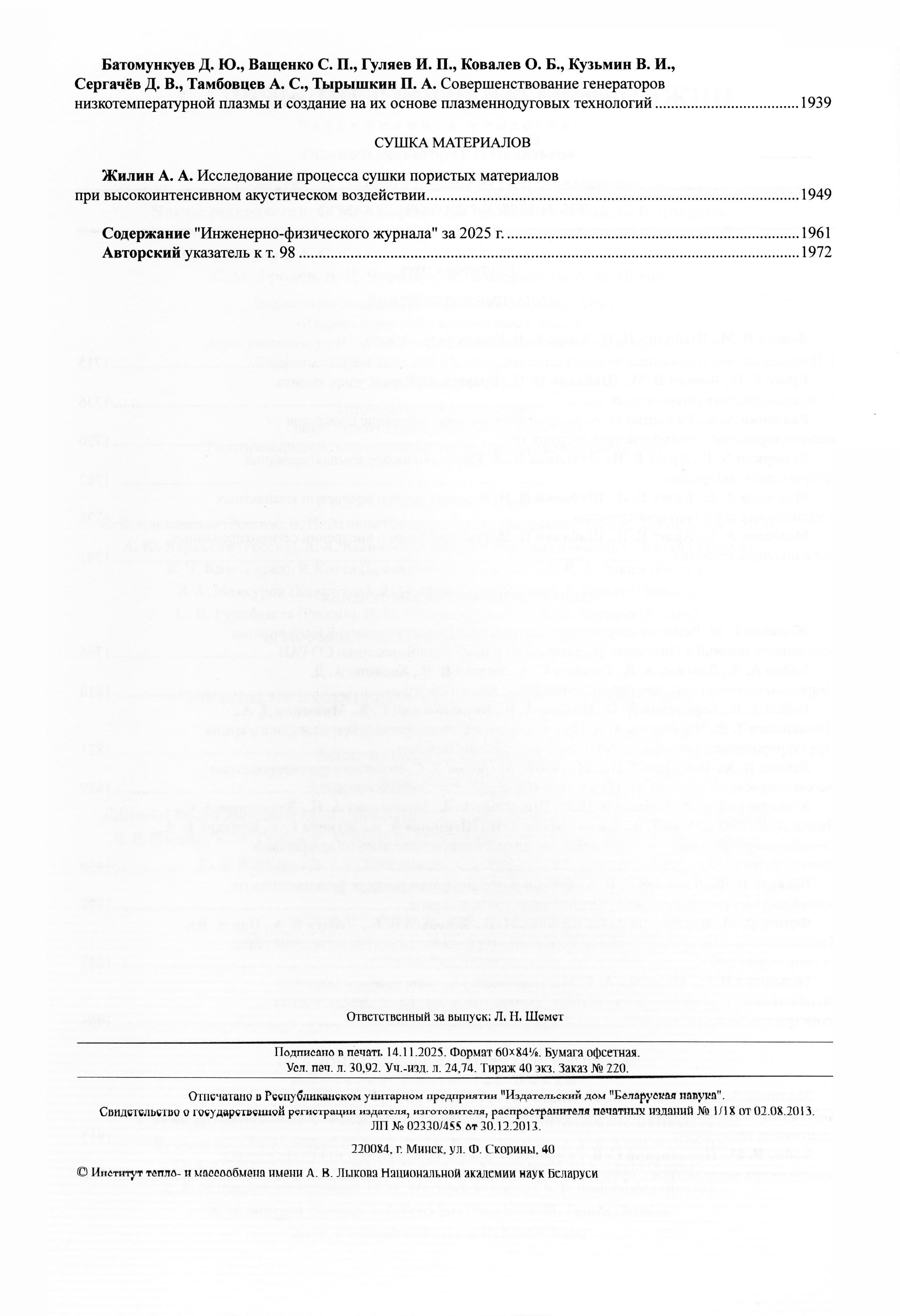 23.01.2026-16:30 Инженерно-физический журнал 2025 Т.98 № 6 Инженерно-физический журнал 2025 Т.98 № 6 2025 6 ,