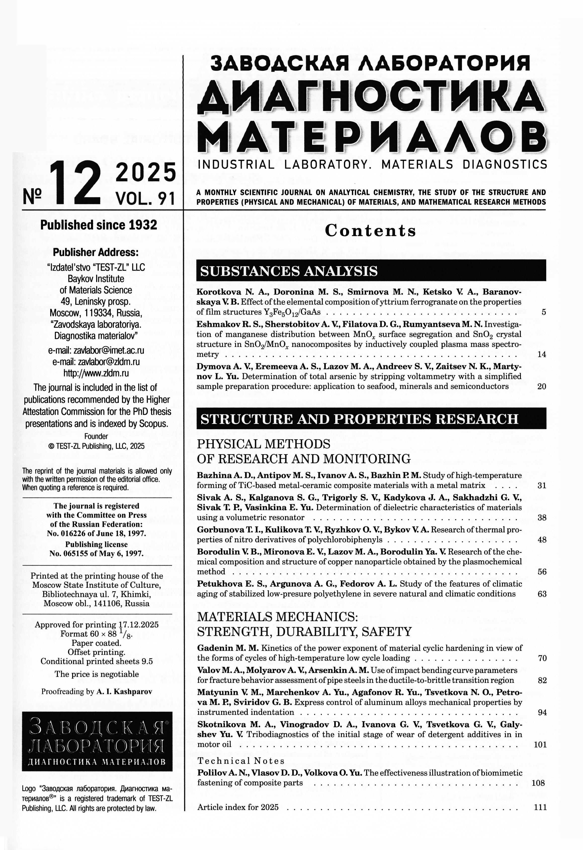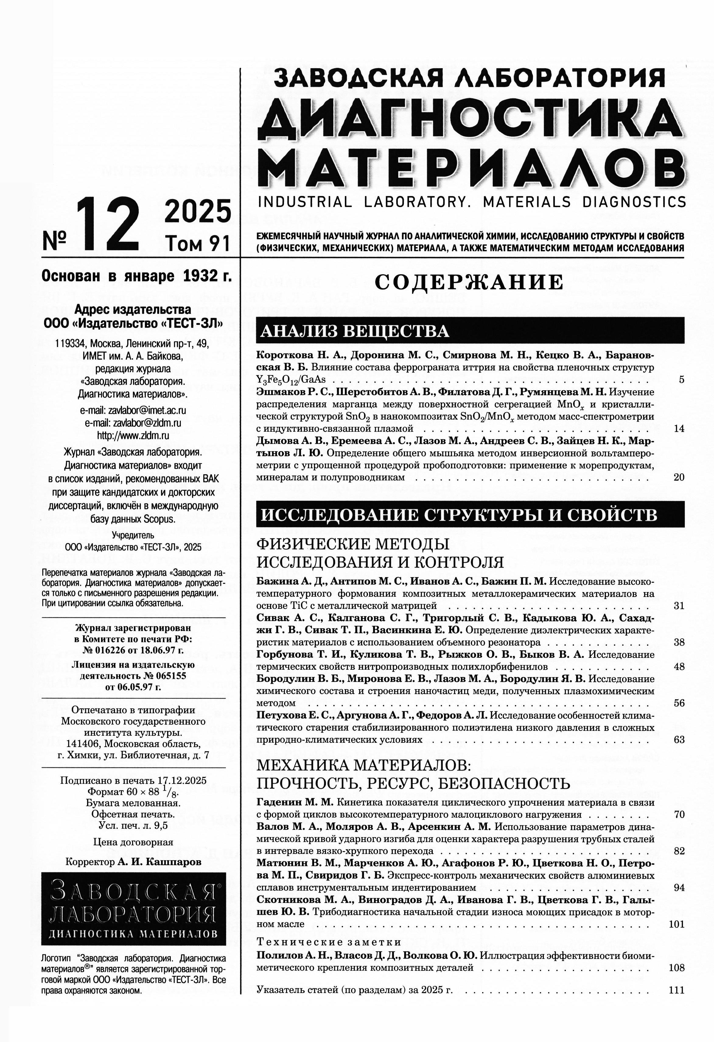 23.01.2026-16:44 Заводская лаборатория. Диагностика материалов 2025 Т.91 № 12 Заводская лаборатория. Диагностика материалов 2025 Т.91 № 12 2025 12 ,