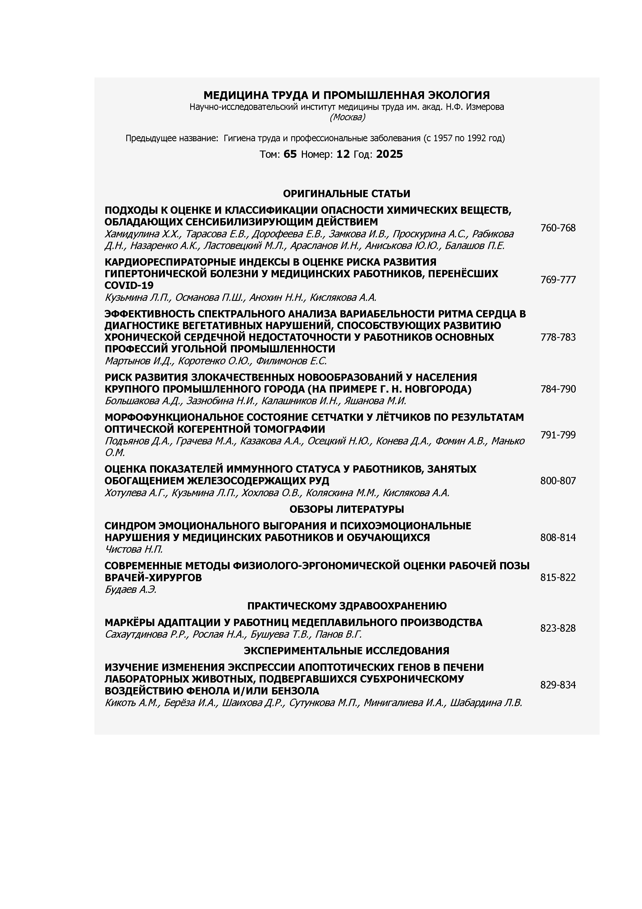 Медицина труда и промышленная экология 2025 Т.65 N12 |