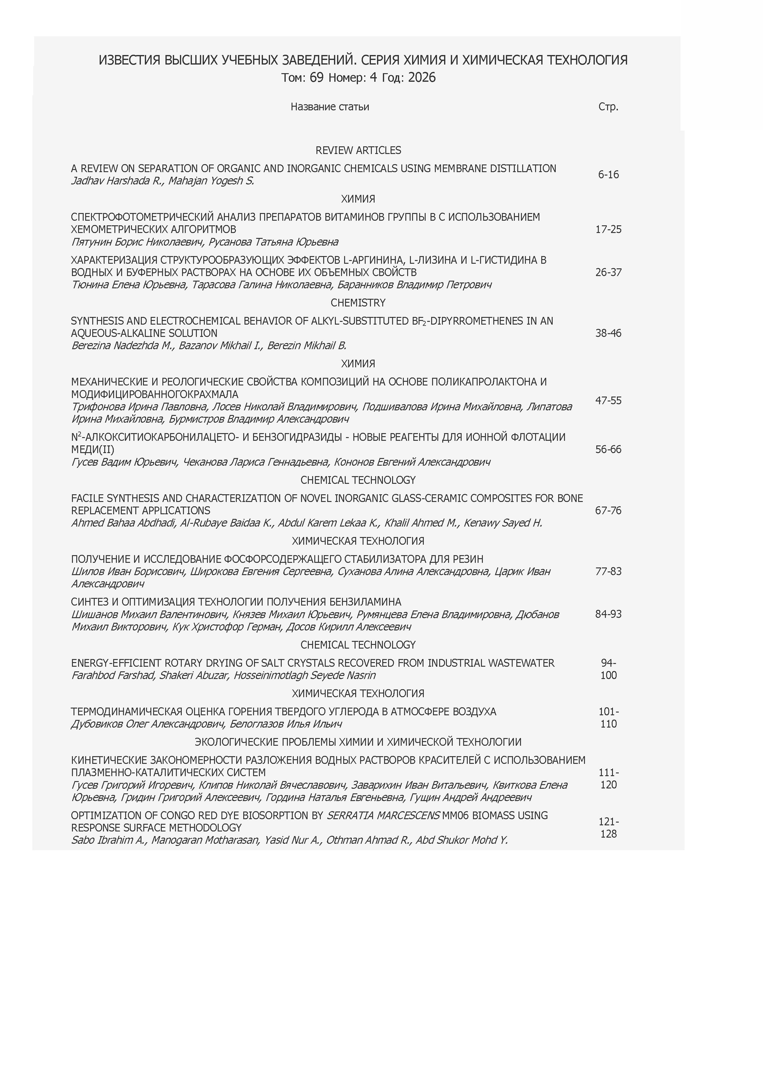 Известия ВУЗов. Сер. Химия и химическая технология 2026 Т.69 № 4 |