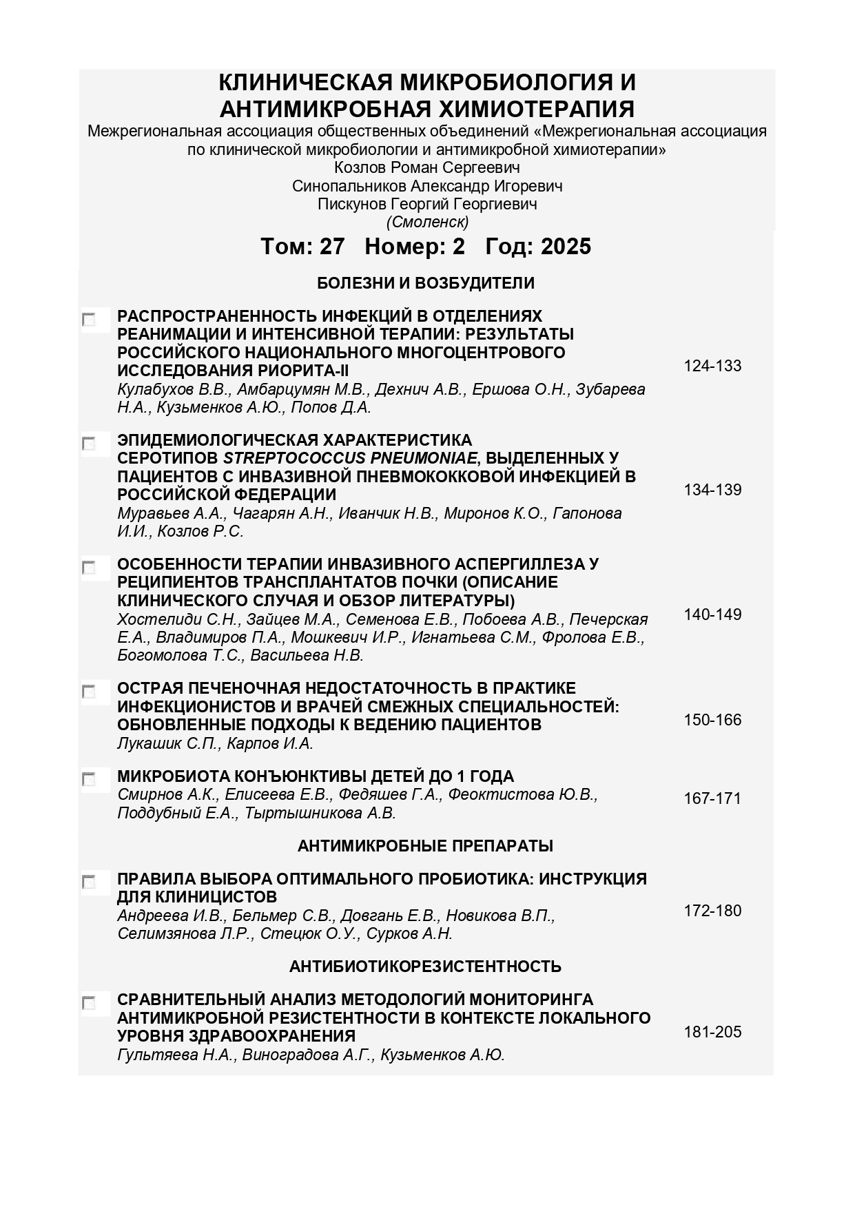 Клиническая микробиология и антимикробная химиотерапия 2025 Т.27 № 2 |