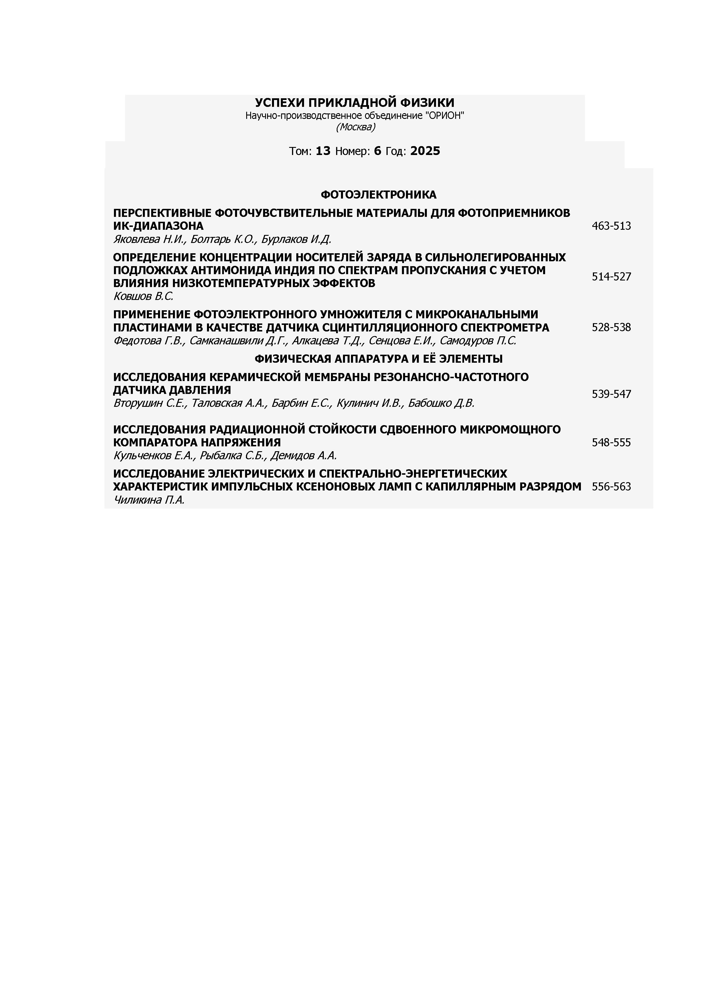 19.02.2026-17:35 Успехи прикладной физики 2025, Т.13 N 6 Успехи прикладной физики 2025, Т.13 N 6 2025 6
