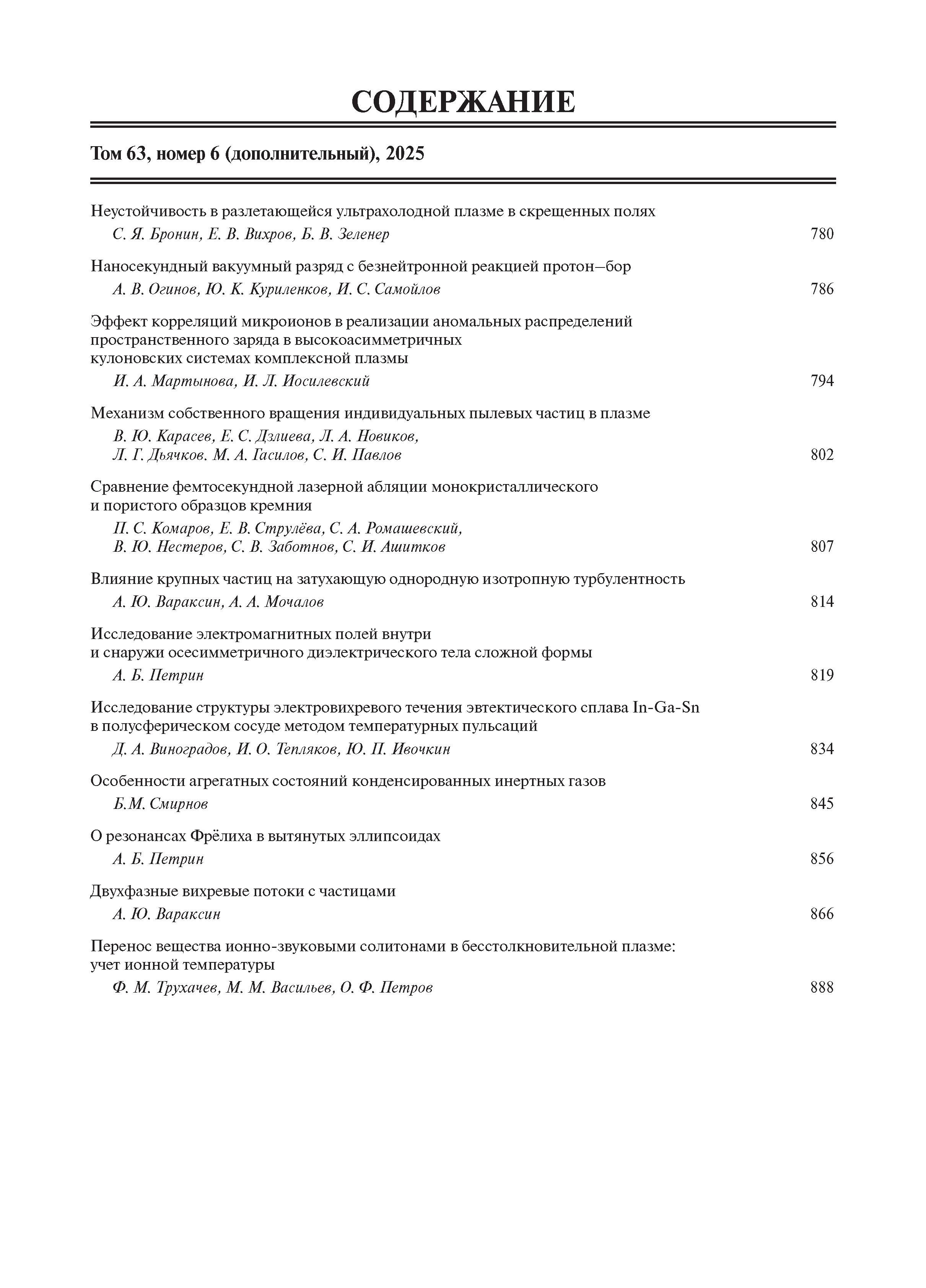Теплофизика высоких температур 2025 Т.63 № 6 (дополнительный) |